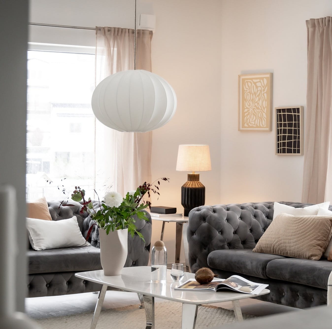 Połącz abażur Hilma z wybranym kablem z oprawką (według własnych preferencji kolorystycznych oraz kształtu podsufitki), połącz z ciepłą, energooszczędną żarówą (najlepiej opalową), aby podkreślić jego zdolność do delikatnego rozpraszania światła. W zestawieniu z naturalnymi materiałami, takimi jak drewno, len, terakota, czy rattan, wprowadzi do wnętrza przytulny i organiczny akcent. Dobrze prezentuje się także w minimalistycznych wnętrzach, ocieplając je wizualnie.