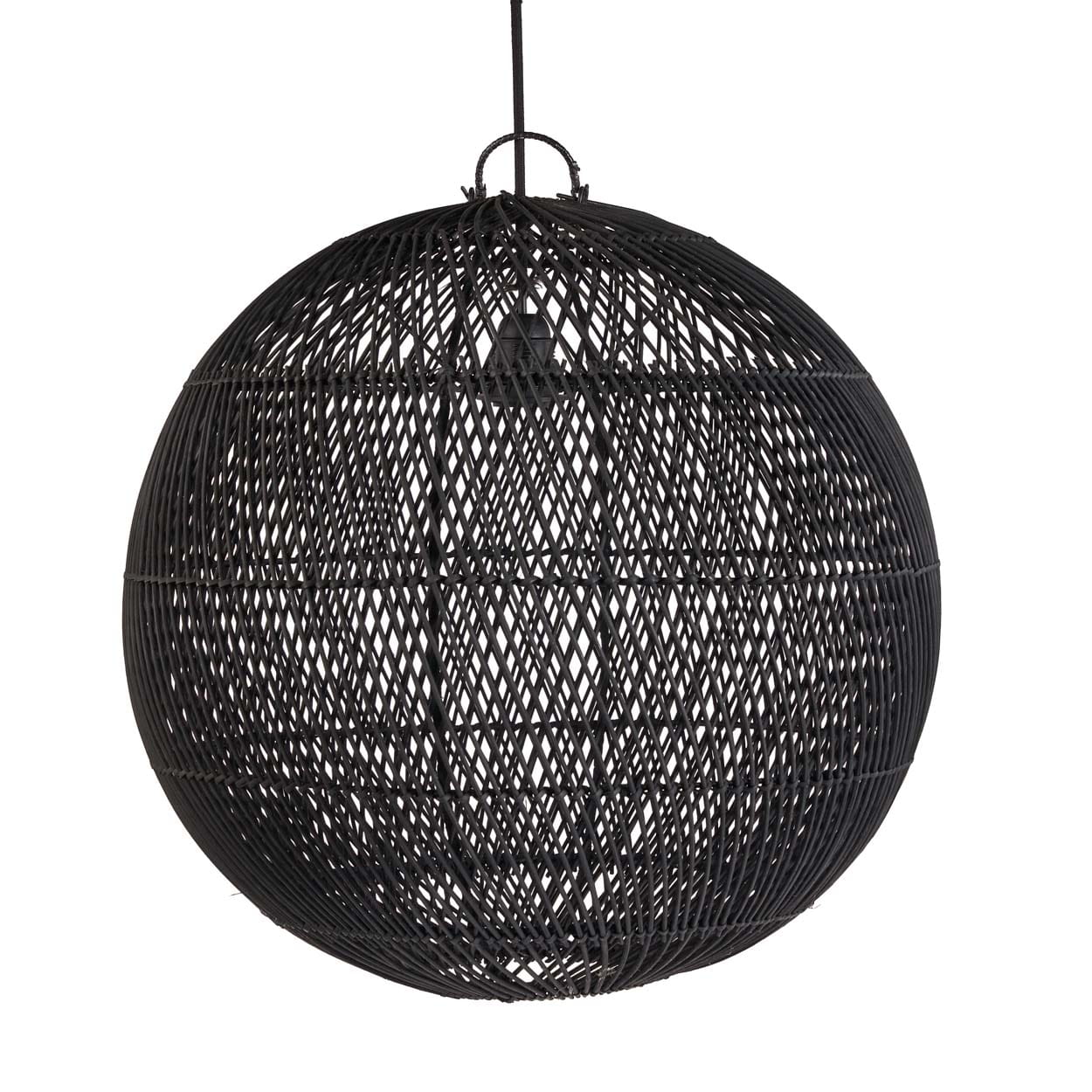 Czarny abażur rattanowy kula Bubble od belgijskiej marki Bazar Bizar to oryginalny element dekoracyjny inspirowany delikatnością unoszących się baniek mydlanych.