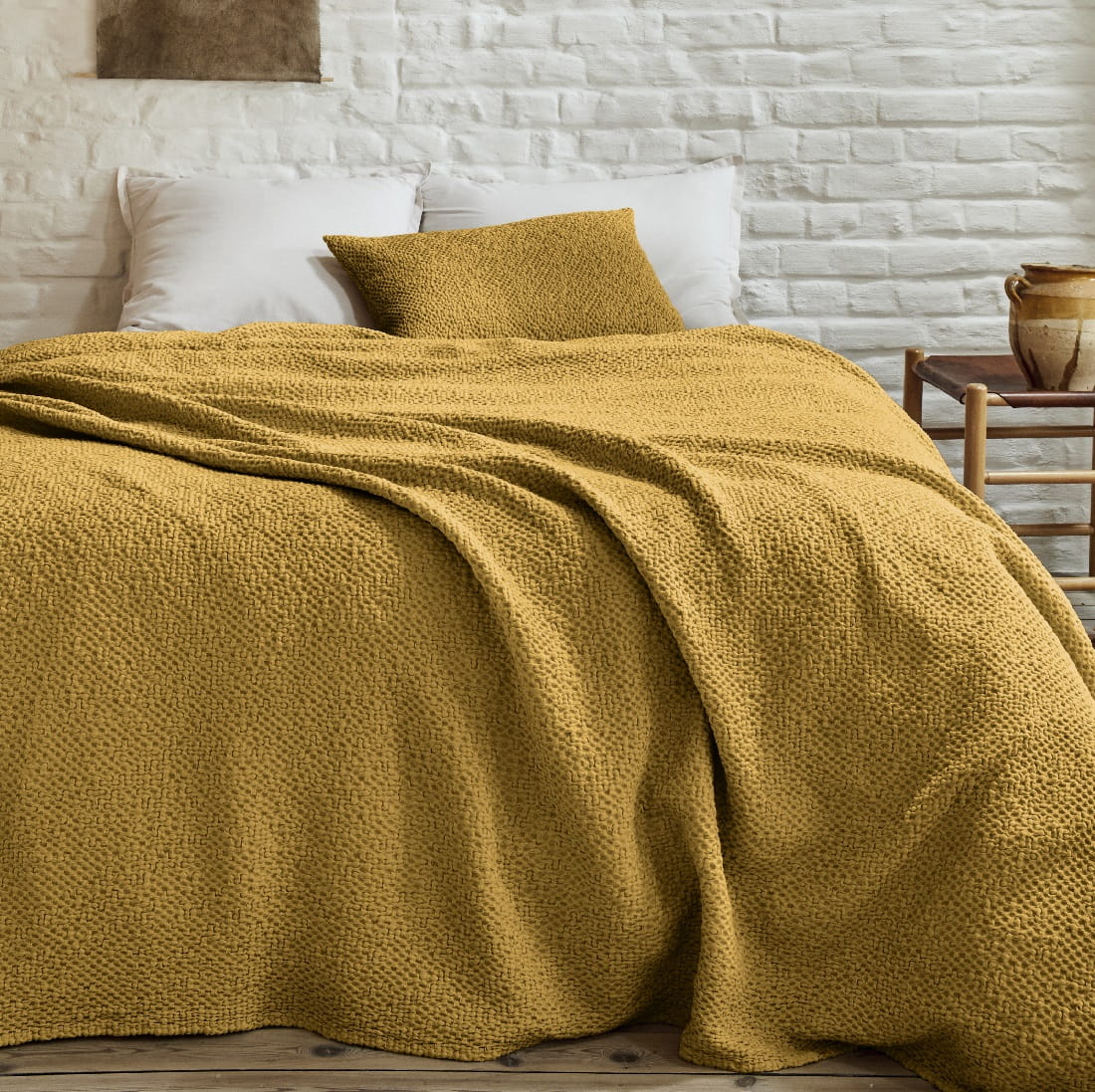 Starannie tkana w Portugalii, narzuta bawełniana na łóżko Songe wyróżnia się trwałością i dbałością o detale. Faktura plastra miodu dodaje jej nie tylko atrakcyjnego wyglądu, ale również przyjemnej w dotyku miękkości. Naturalna bawełna zapewnia doskonałą cyrkulację powietrza, co sprawia, że narzuta jest odpowiednia na każdą porę roku – latem daje uczucie lekkości, a zimą dodatkowe ciepło.