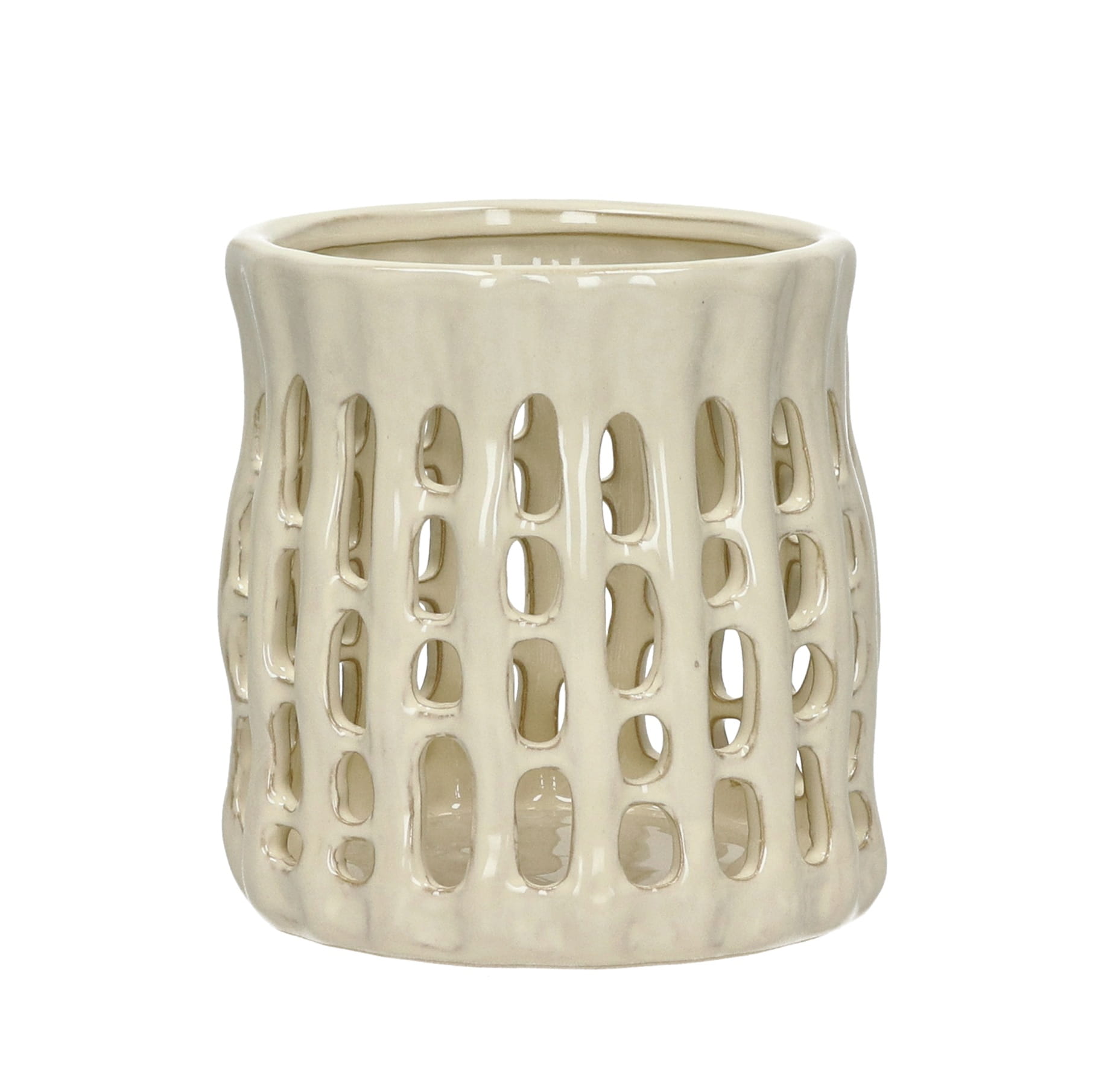 Beżowy świecznik z kamionki obiekt zaprojektowany zarówno do przechowywania świecy ale i jako nowoczesna dekoracja do wnętrza. Kamionkowa forma świecznika w ciepłym beżu została ukształtowana miękką, organiczną linią z delikatnymi wypukłościami i wklęsłościami. Rozmieszczone w bryle otwory filtrują płomień, tworząc spokojną grę światła i cienia. To świecznik, który od pierwszych sekund wyjaśnia swoją wartość: naturalny materiał, masa i forma dają efekt, którego nie da się uzyskać cienkim szkłem czy metalem.