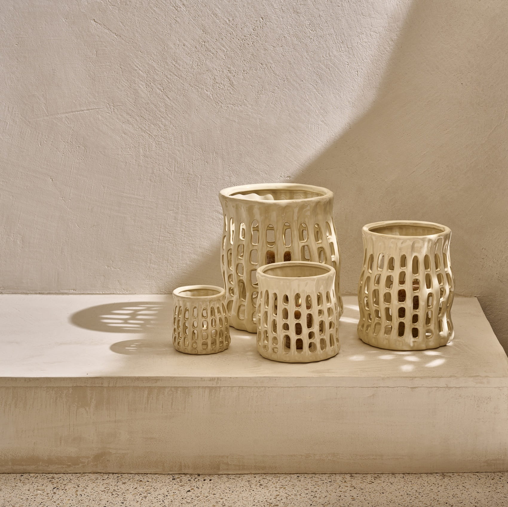 Otwory w kamionce działają jak filtr. Zamiast jednego punktu światła pojawia się miękka poświata rozłożona na powierzchni stołu i ściany. Dzięki temu Nerida sprawdza się wieczorem, gdy potrzebne jest światło nastrojowe, a nie funkcjonalne. Płomień pozostaje osłonięty, a wnętrze zyskuje spokojny rytm.