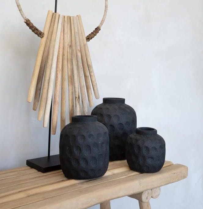 Czarny wazon ozdobny z kolekcji Trendy, z terakoty, doskonale nadaje się jako wazon na suszone kwiaty i średniej długości trawki dekoracyjne, gałęzie.