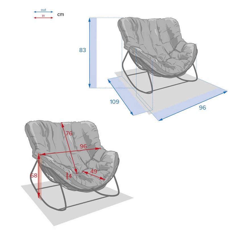 Kolor tego bujanego fotela ogrodowego wraz z organicznym kształtem wprowadzają do ogrodu lub na taras elegancję i przyjemną, odprężającą stylistykę. Jego nowoczesny design w kształcie jajka przyciąga wzrok i stanowi wyjątkowy element dekoracyjny, który wzbogaca przestrzeń na świeżym powietrzu. Fotel ten jest idealnym miejscem do relaksu, czytania książki, czy po prostu cieszenia się chwilą spokoju na łonie natury.