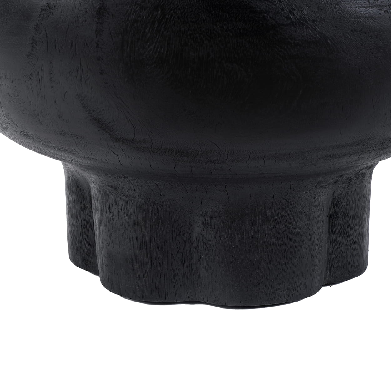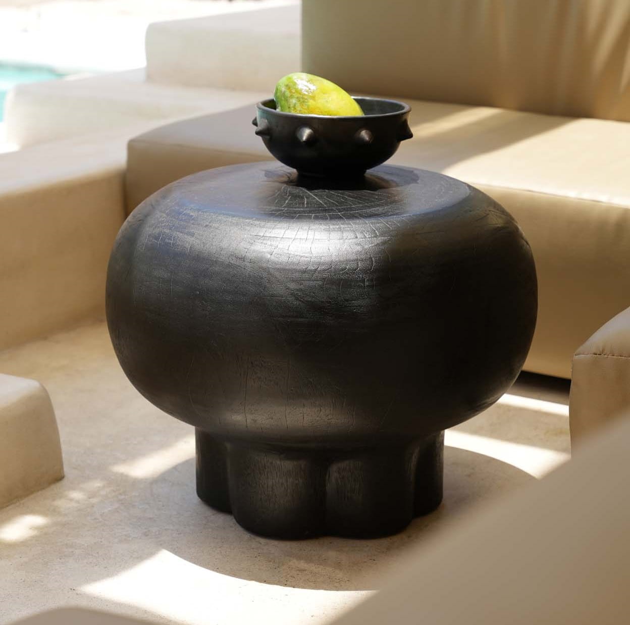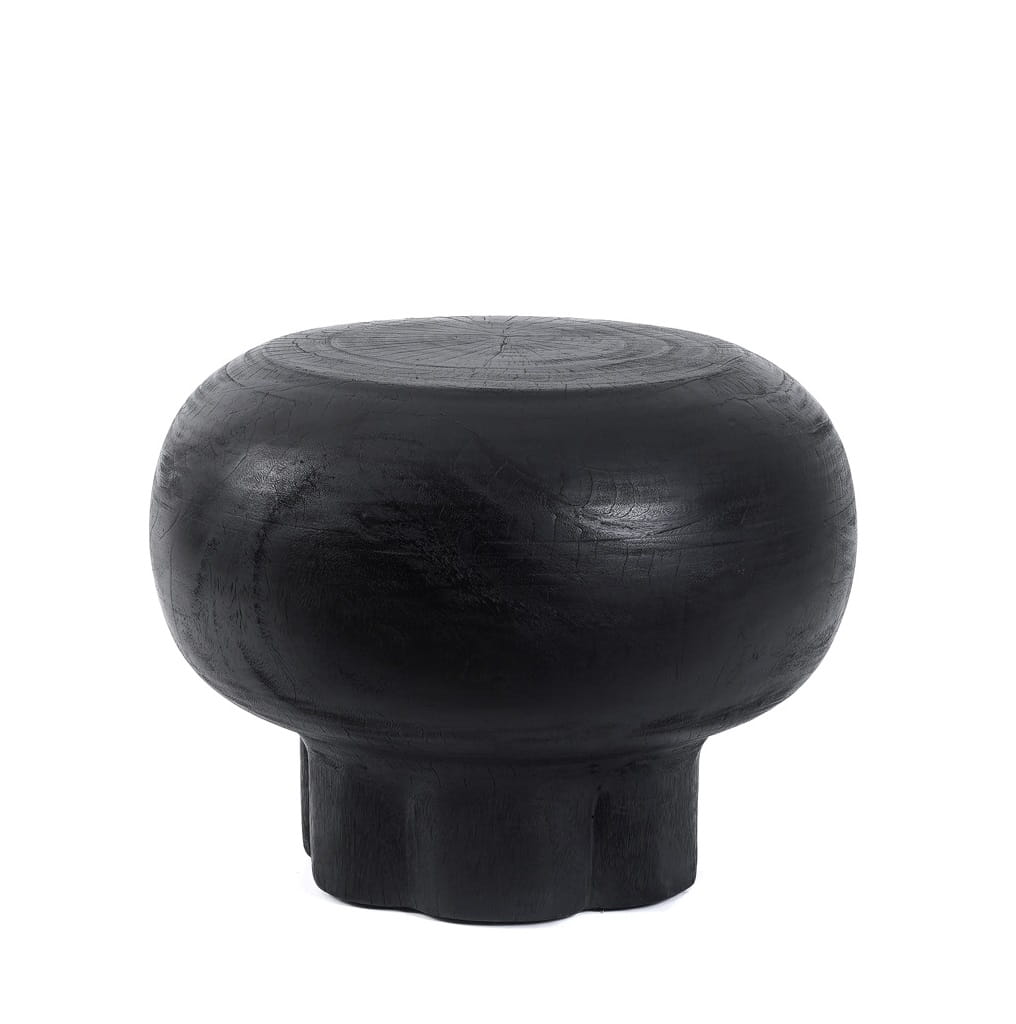 Czarny drewniany stolik kawowy Tutup od Bazar Bizar to zachwycający mebel, który łączy funkcjonalność z artystycznym designem. Inspirowany formą meduzy, charakteryzuje się płynnymi liniami i organicznym kształtem, które wprowadzają do wnętrza lekkość i unikalny styl. Wykonany z drewna suar, wykończony na czarno, cechuje się też naturalną trwałością.