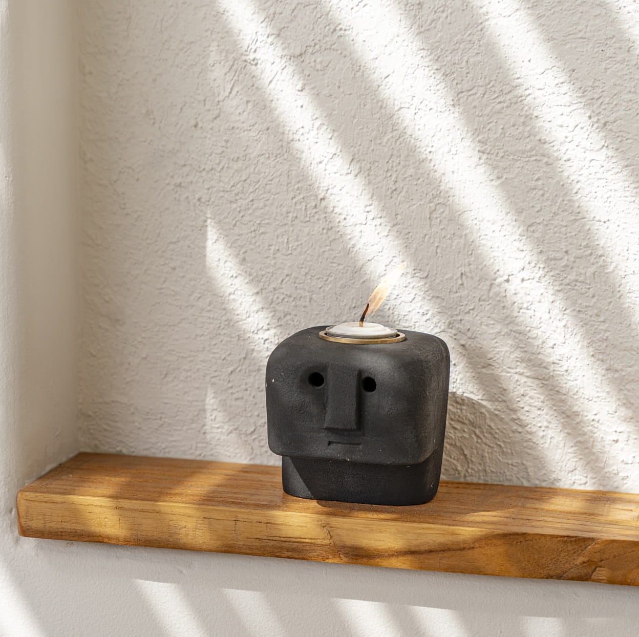 Dekoracyjny kamienny świecznik wykonany ręcznie z piaskowca. Wykończenie w czarnym kolorze. Świecznik idealnie sprawdzi się na tealigty, jednocześnie będąc piękną, oryginalną dekoracją wnętrza.