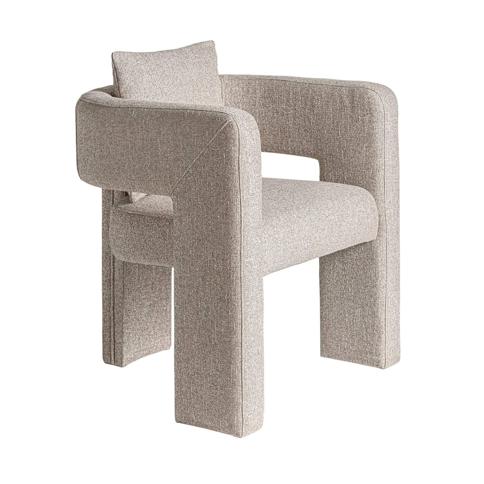 Prosta, a jednocześnie nowoczesna forma fotela na trzech nogach z wysokimi podłokietnikami sprawia, że stanowi on designerski akcent w każdym wnętrzu. Można go zestawić z innymi meblami o miękkich liniach lub wykorzystać jako kontrastowy element w surowych, industrialnych aranżacjach.