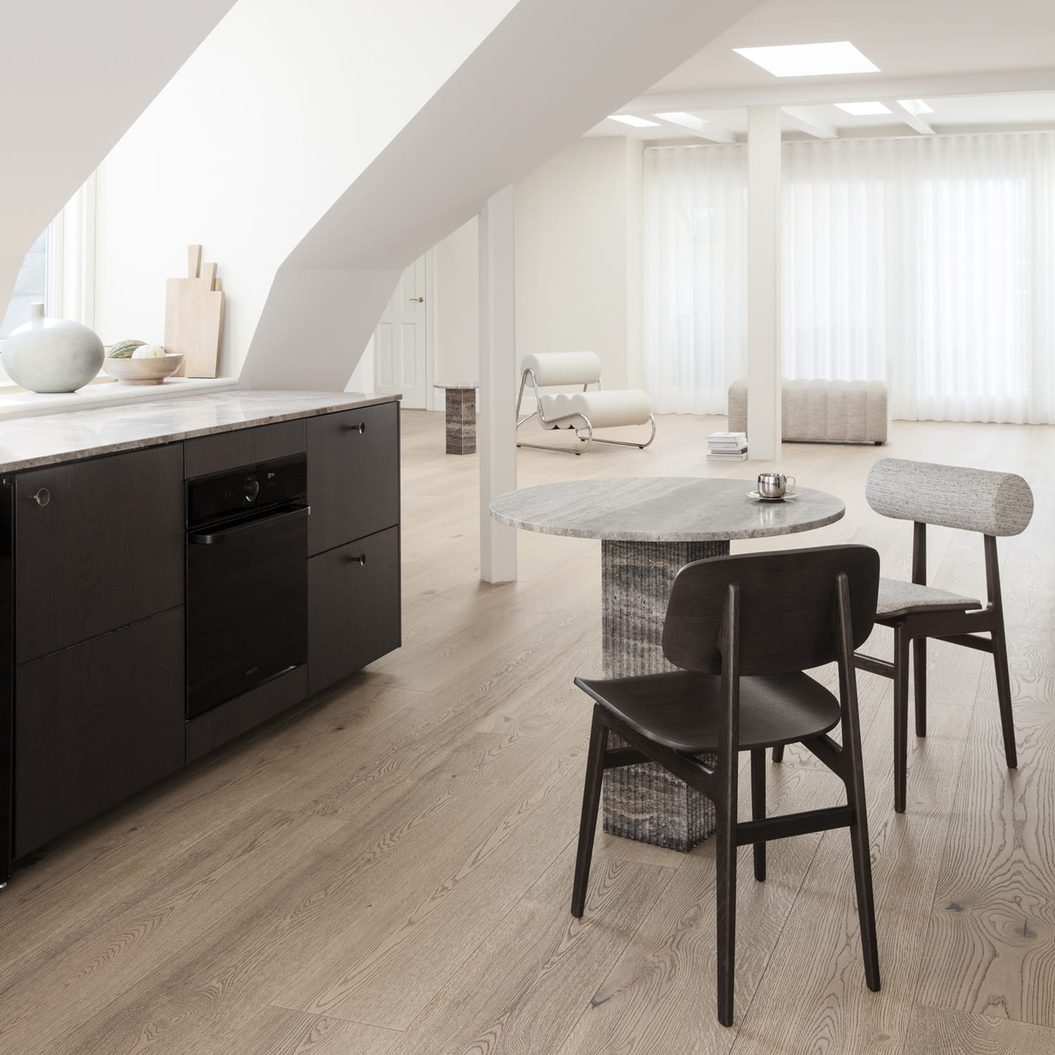 Totem nie narzuca pozycji siedzenia. Jego forma pracuje z ciałem, a nie przeciwko niemu. Zaokrąglone oparcie inspirowane kultową linią NORR11 Hippo pozwala na bardziej swobodne, zrelaksowane siedzenie niż klasyczne krzesła jadalniane, co czyni ten model idealnym wyborem do wnętrz, w których spędza się przy stole więcej czasu — nie tylko podczas posiłków.