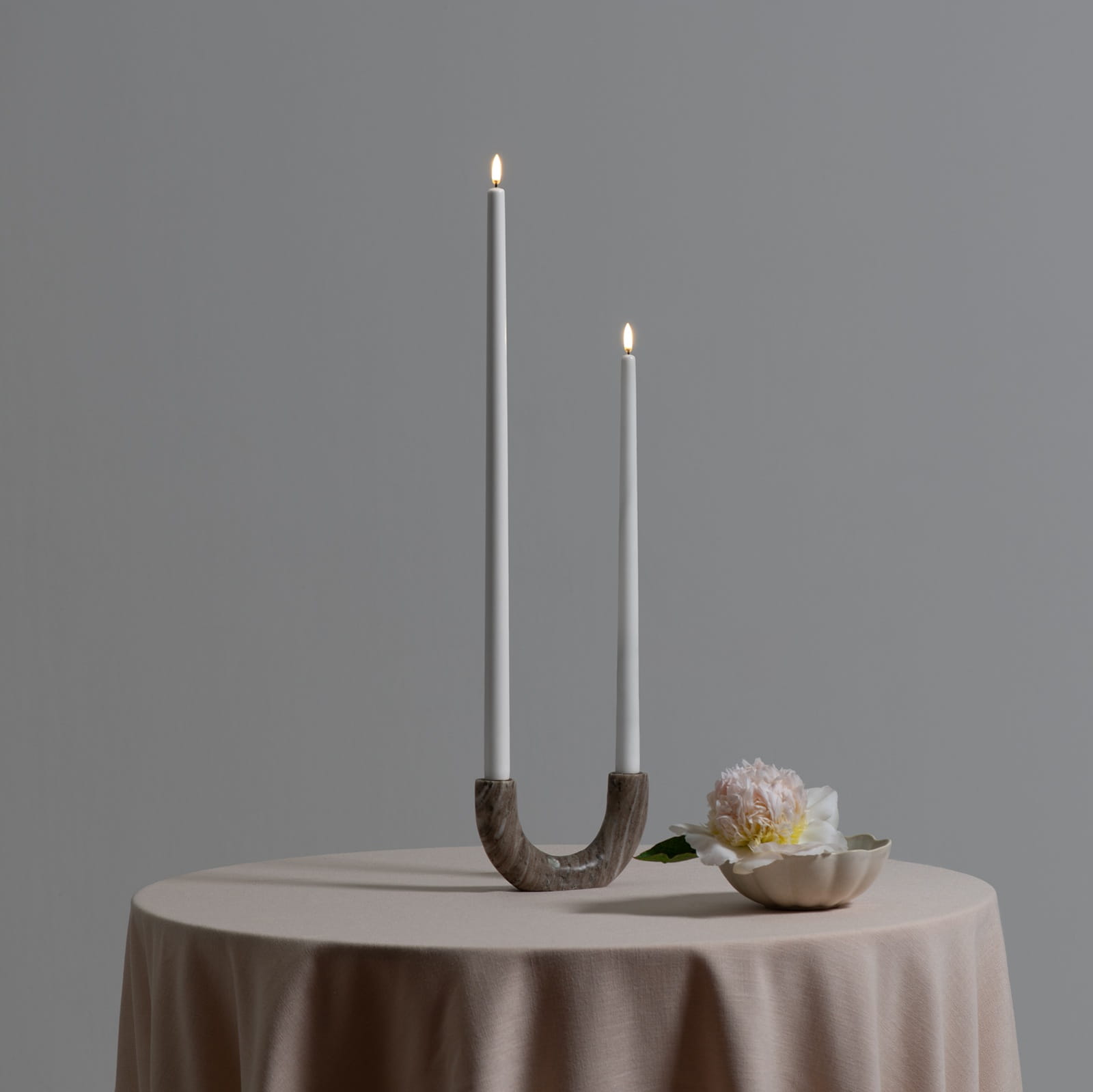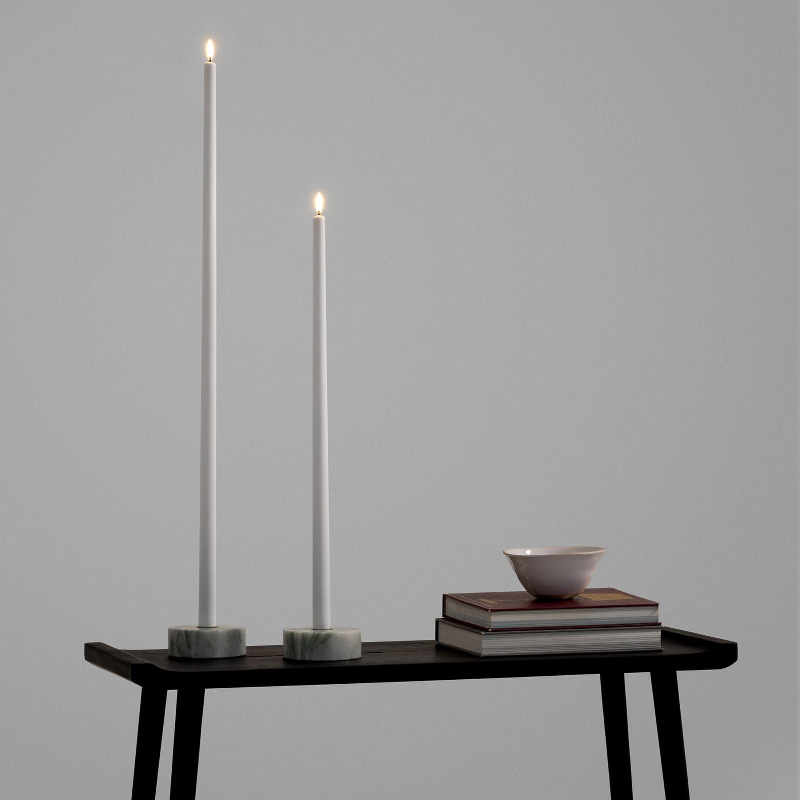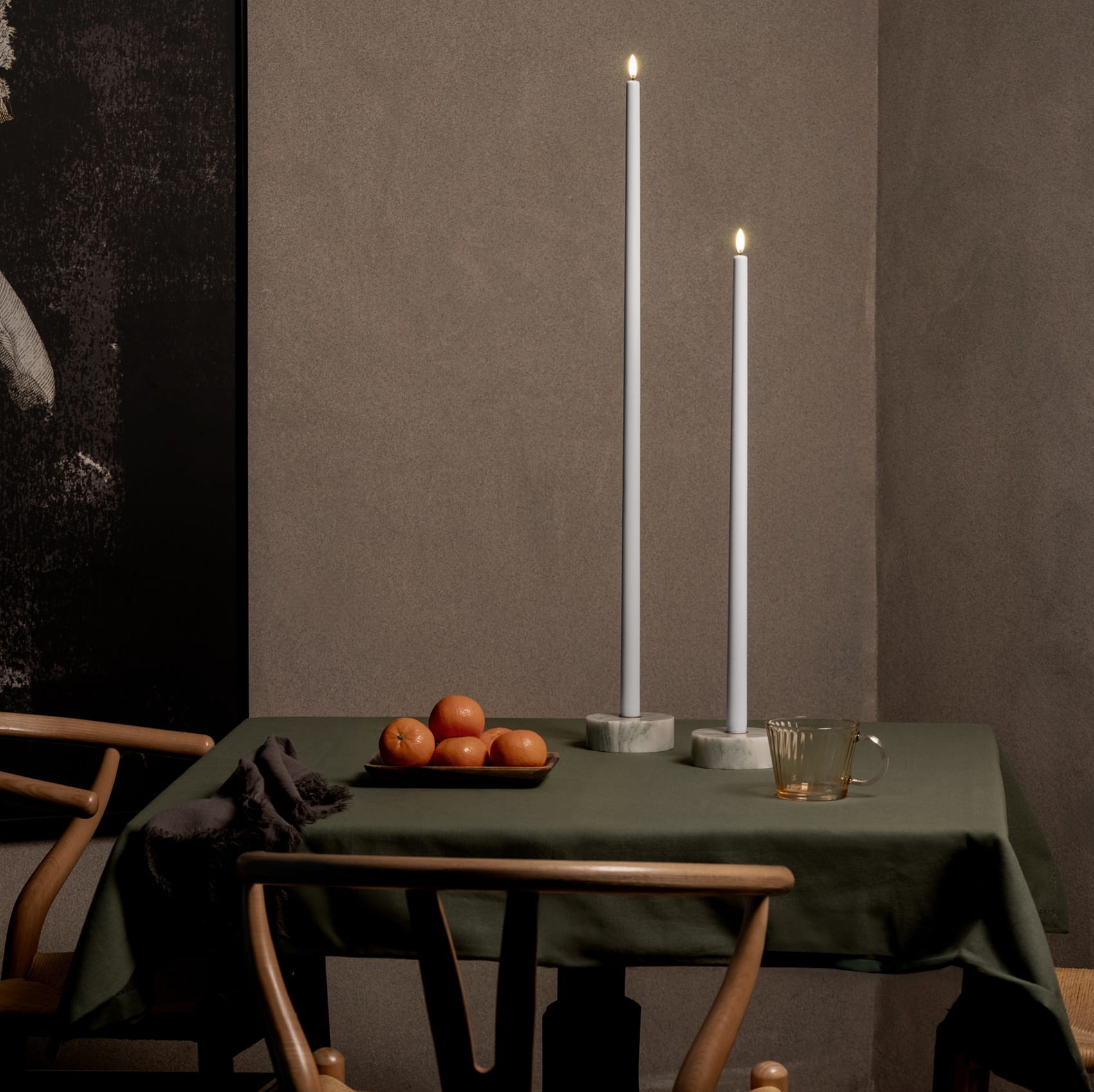 Długość 55 cm buduje wyraźniejszą linię światła. To rozwiązanie do wysokich i niskich świeczników, aranżacji, w których światło ma być elementem kompozycji, a nie tylko dodatkiem.