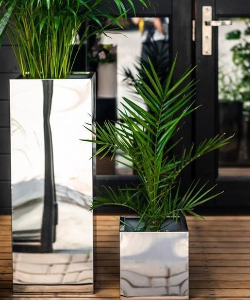 Jak sadzić rośliny w donicach lustrzanych ze stali?