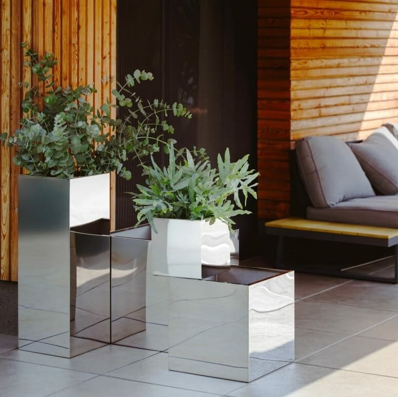 Jak sadzić rośliny w donicach lustrzanych ze stali?