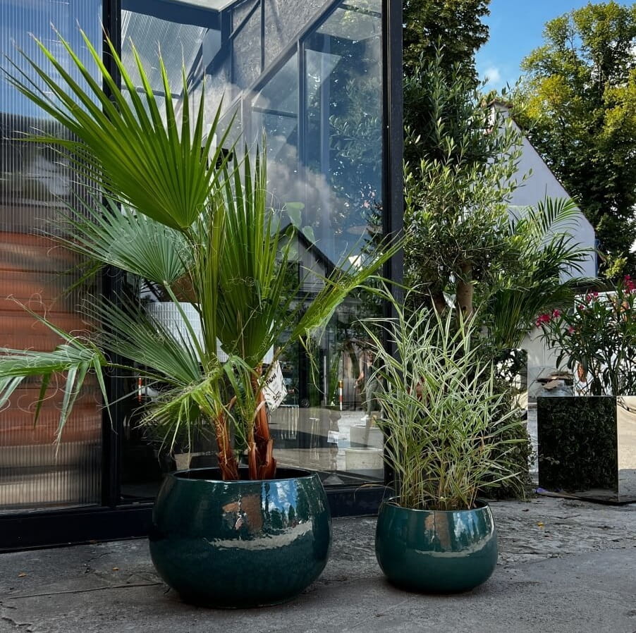 Donica ogrodowa ceramiczna ze szkliwioną glazurą, w kolorze turkusowym to połączenie elegancji, trwałości i unikalnego rzemiosła. Jej forma przypomina klasyczną misę o delikatnie zwężanym ku górze kształcie, który harmonijnie współgra zarówno z bujną roślinnością, trawami, kwiatami, jak i minimalistyczną architekturą. Lśniące szkliwo nadaje powierzchni wyjątkowego połysku, a intensywny kolor przyciąga wzrok, wnosząc do przestrzeni wyrazisty akcent.
