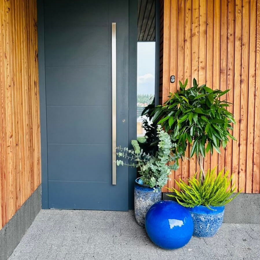 Ustawione razem przy wejściu lub asymetrycznie na tarasie, budują wrażenie przemyślanej, dopracowanej aranżacji. Głębia koloru i połysk szkliwa sprawiają, że rośliny wyglądają bardziej wyraziście. To element, który od razu komunikuje jakość i trwałość – bez sezonowości, bez kompromisów.