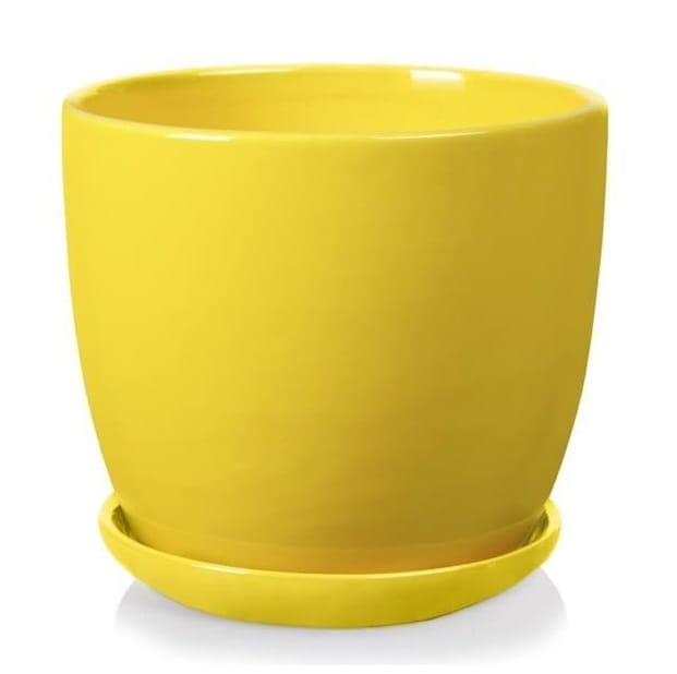 Doniczka ceramiczna z podstawką Ø17, żółta - Polnix