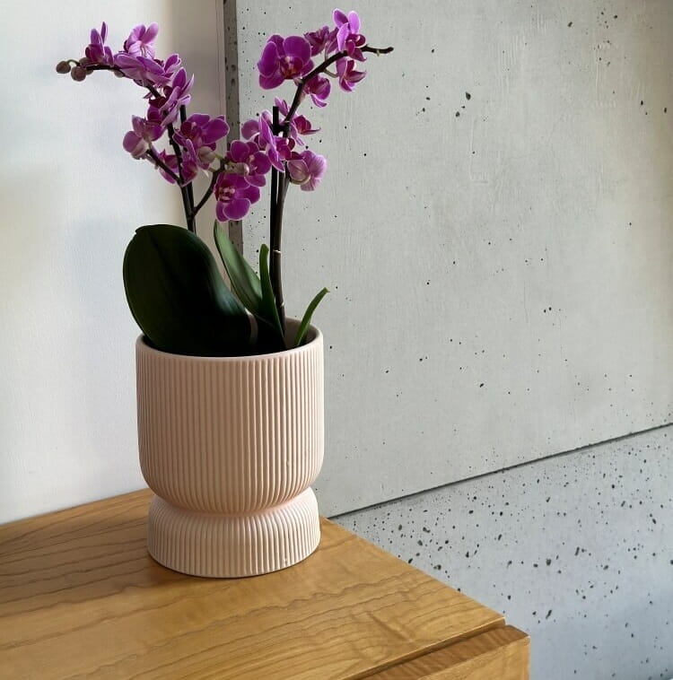 Po ustawieniu rośliny forma naturalnie kieruje wzrok ku górze, a pionowe ryflowanie nadaje całości elegancki rytm. Na komodzie, półce czy stoliku pomocniczym doniczka buduje spójność i wizualny balans. To detal, który sprawia, że wnętrze wygląda dopracowanie i harmonijnie.