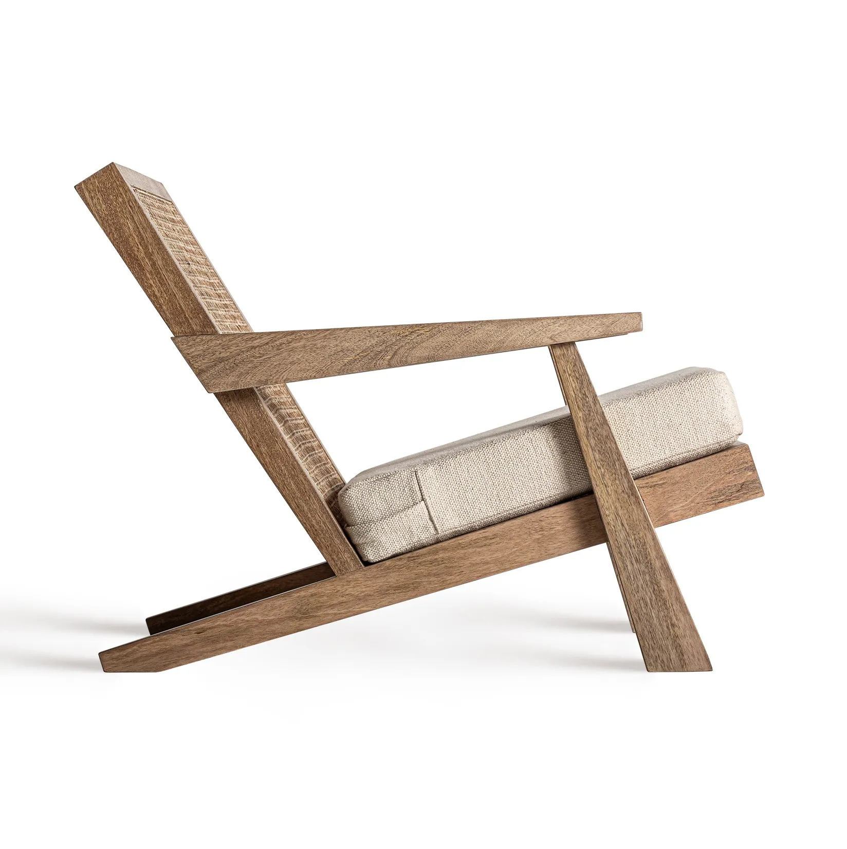 Wykonany z solidnego drewna mango w brązowym ciepłym odcieniu, zachwyca swoją minimalistyczną, ale jednocześnie rzeźbiarską formą. Charakterystyczna dla tego modelu plecionka wiedeńska, nadaje mu subtelnej lekkości, tworząc efektowne zestawienie z masywną, geometryczną ramą z drewna.
