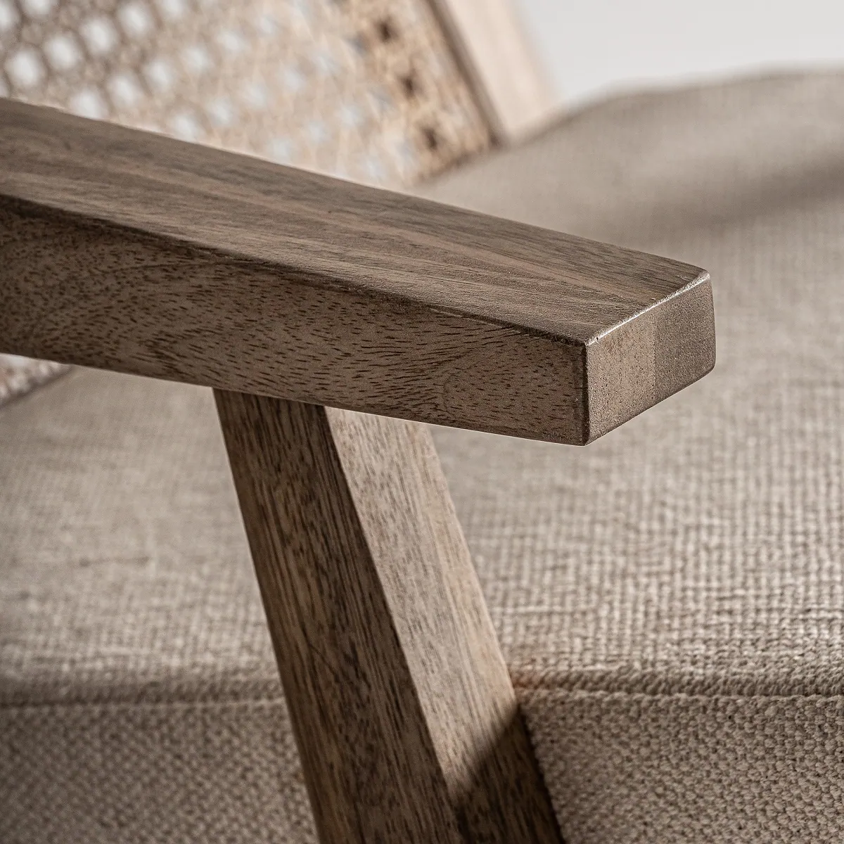 - Materiał: drewno mango, rattan plecionka wiedeńska, tkanina