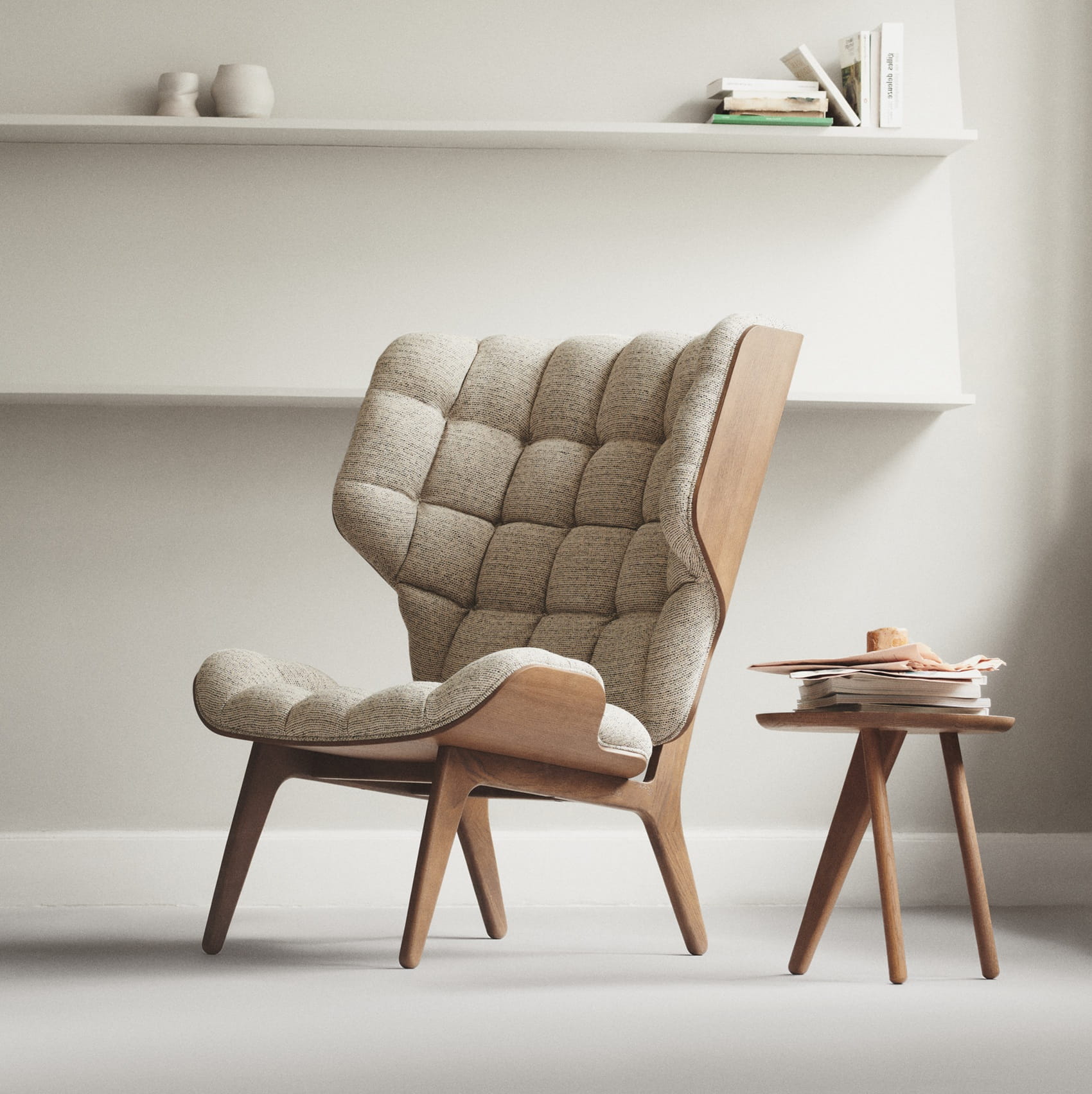 Mammoth został zaprojektowany jako wygodny fotel wypoczynkowy do długiego siedzenia. Wysokie oparcie z charakterystycznymi, bocznymi „skrzydłami” subtelnie otula ciało, dając poczucie prywatności i wyciszenia. To fotel, który naturalnie zachęca do zatrzymania się na dłużej – przy książce, filmie lub po prostu w ciszy.