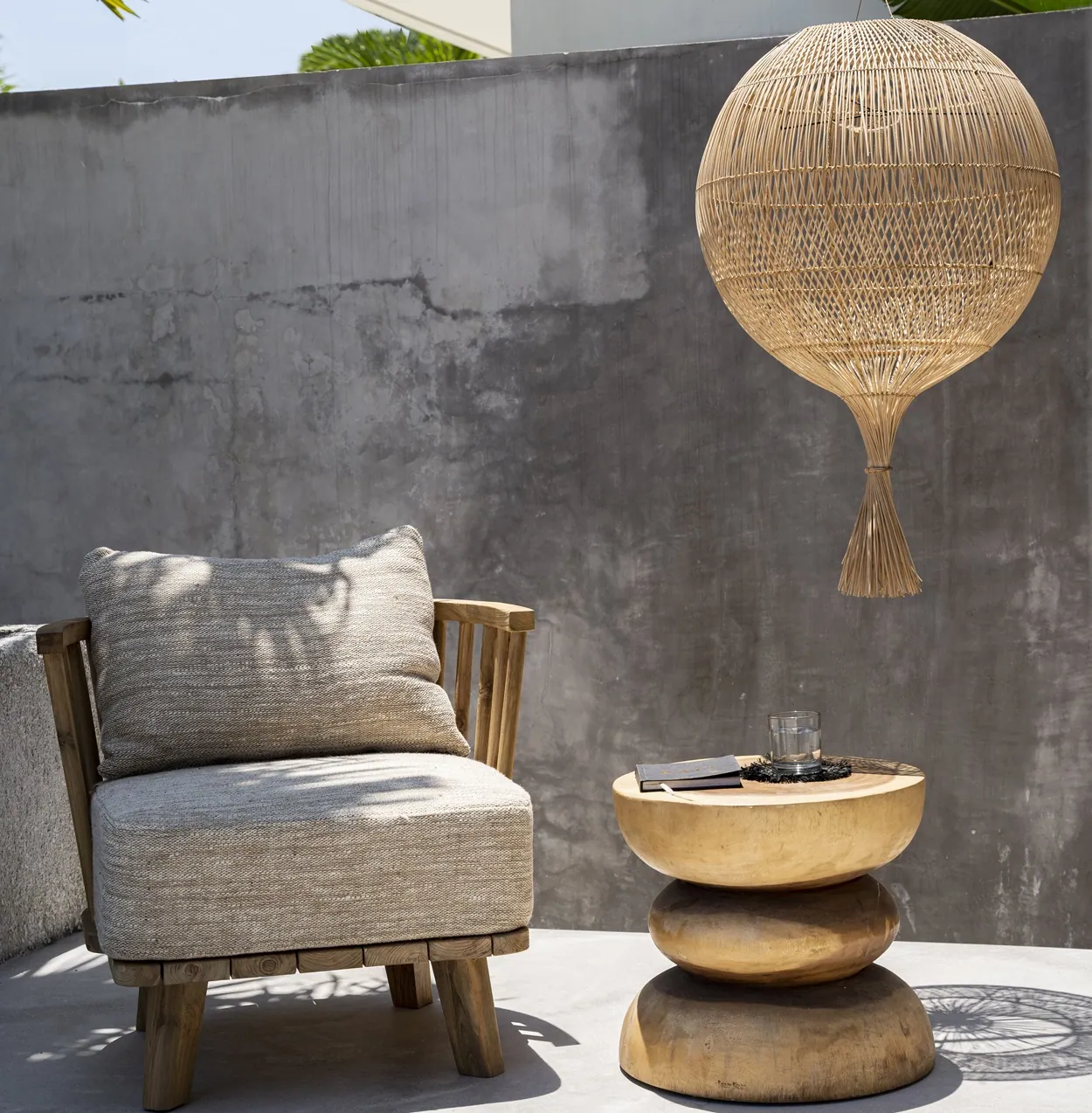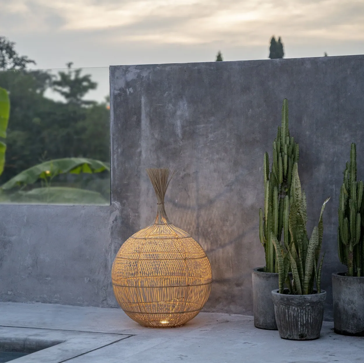Oryginalny, bardzo duży, naturalny abażur do lampy sufitowej jak i lampy podłogowej, wykonany ręcznie z rattanu, w naturalnym kolorze. Wonton pięknie zaprezentuje się w salonie i w sypialni. Sprawdzi się zarówno do lampy sufitowej w wysokich pomieszczeniach, jak i w większości mieszkań w roli abażuru do nietuzinkowej lampy podłogowej.