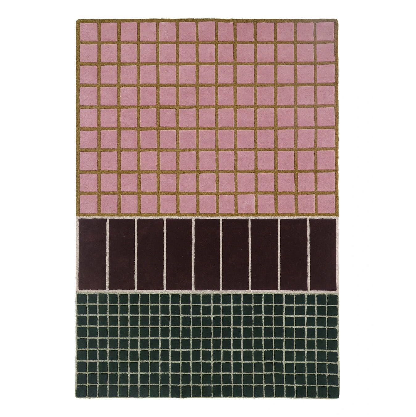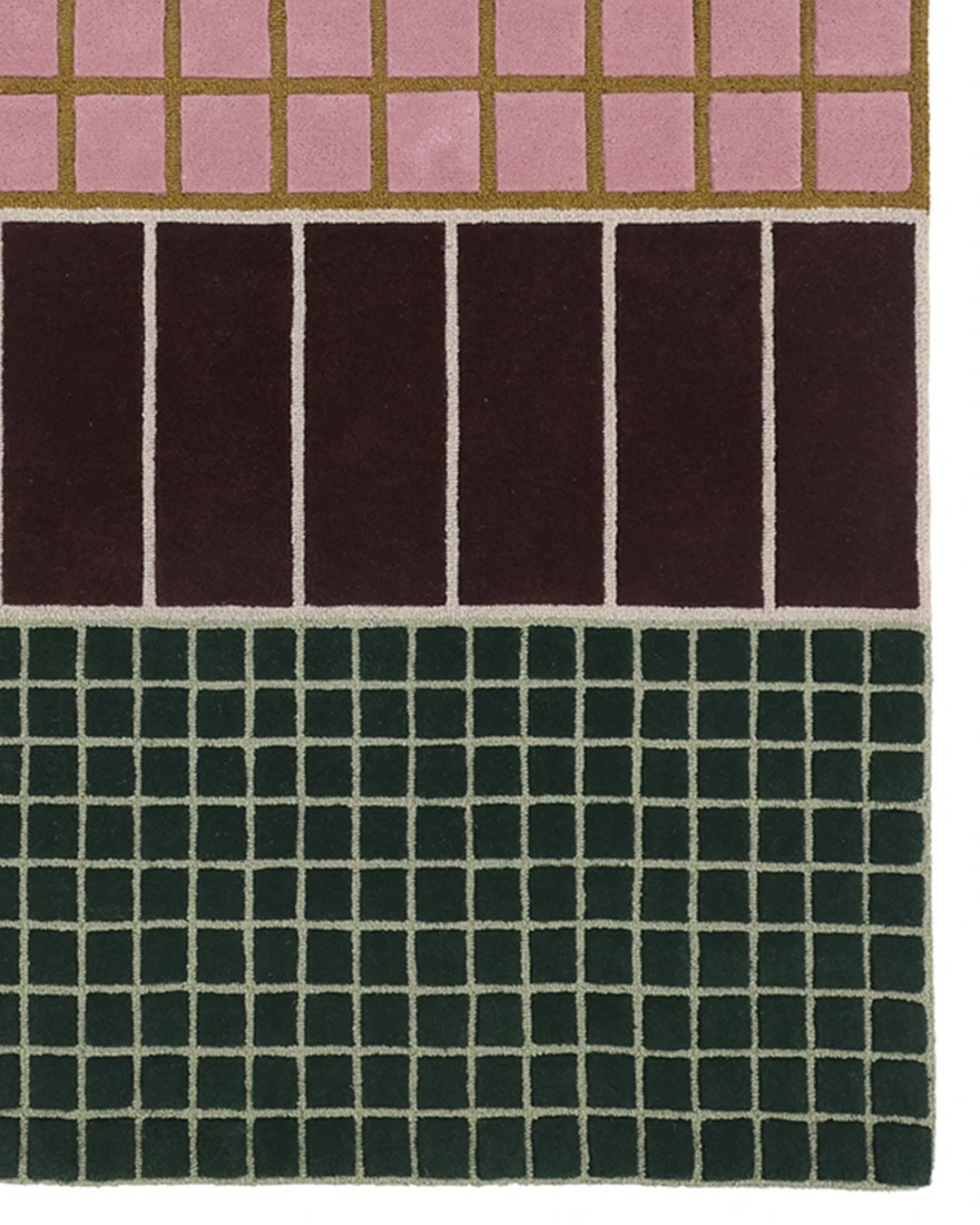 Dywan Baden łączy w sobie estetykę współczesnego designu z klasycznym rzemiosłem. Różnorodne odcienie delikatnego różu, głębokiego burgundu i ciemnej zieleni dopełnione są kontrastującą ochrą i beżem, co tworzy wyjątkowo wyważony efekt wizualny. Ta kolorystyczna harmonia sprawia, że dywan wełniany z geometrycznym wzorem doskonale wpisuje się w przestrzenie w stylu skandynawskim, art déco, modern classic czy nowoczesnym minimalistycznym.