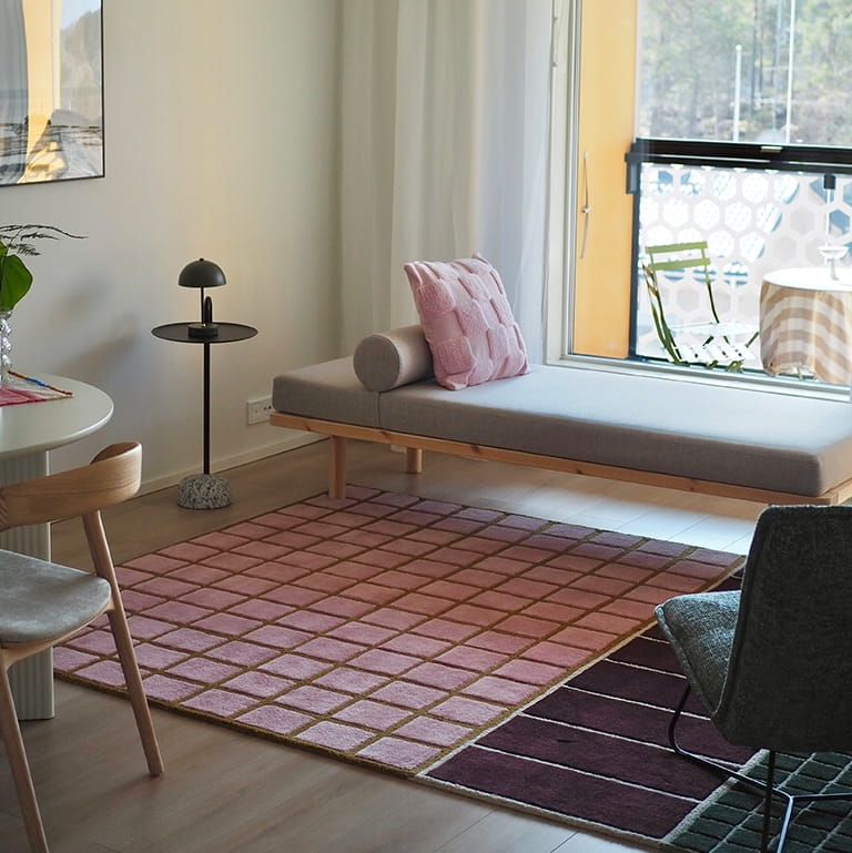Dywan wełniany ręcznie tkany Baden to połączenie sztuki, rzemiosła i luksusu. Zaprojektowany przez główną projektantkę marki Finarte, Marianne Huotari, zachwyca geometrycznym wzorem, w którym każdy detal ma znaczenie. Kolorowe, a zarazem harmonijne kwadraty w odcieniach różu, burgundu i zieleni tworzą kompozycję, która przyciąga wzrok i nadaje przestrzeni artystycznego charakteru. To nowoczesny dywan z wełny, który podkreśla styl wnętrza i staje się jego centralnym punktem.