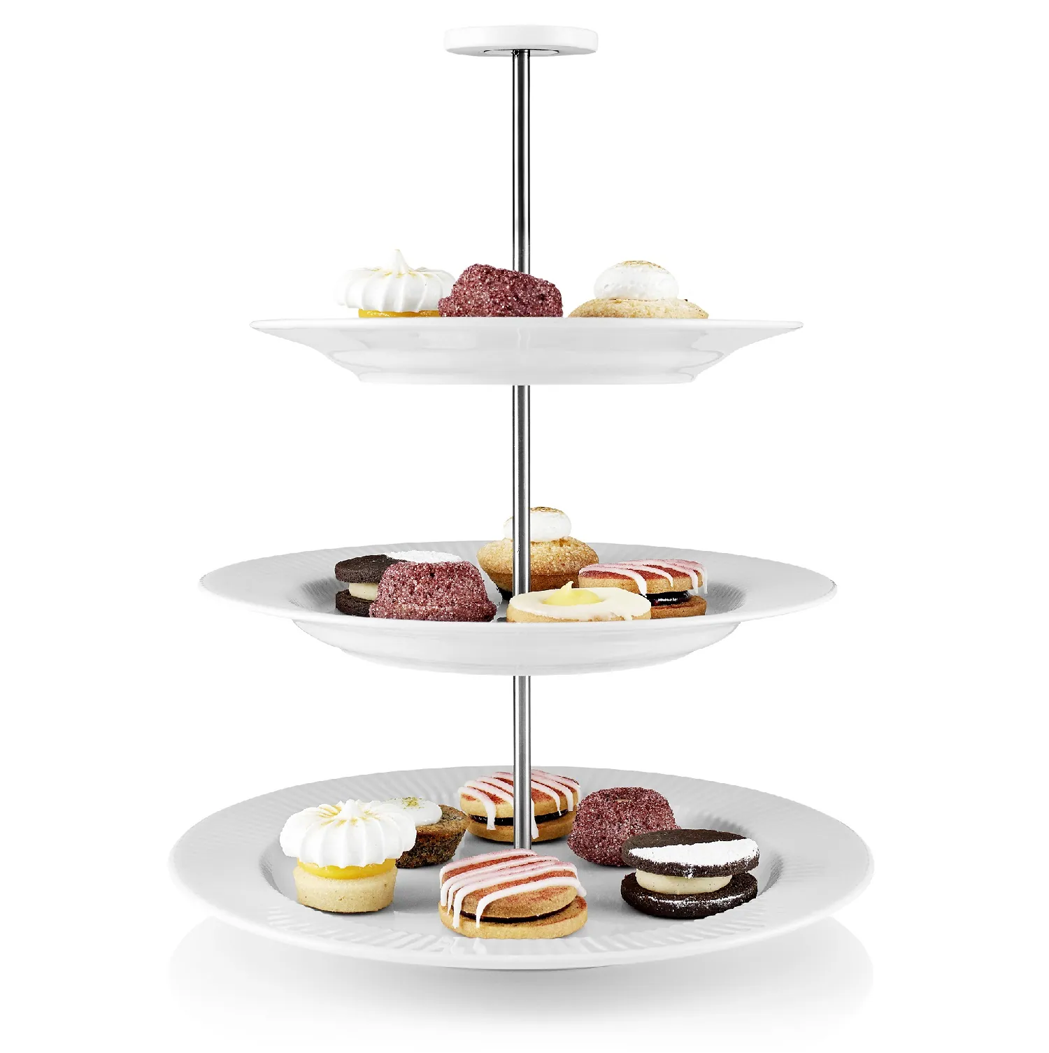 Dzięki trzem różnym poziomom, patera oferuje idealną przestrzeń do prezentacji i serwowania ciast, ciasteczek, czekoladek, cukierków czy świeżych owoców, nadając każdej przekąsce wyjątkowy urok. Jej ponadczasowy design składa się z trzech talerzy Legio Nova o średnicach 19, 22 i 25 cm, tworząc harmonijną kompozycję. Talerze te posiadają ryflowany subtelny wzór charakteryzujący kolekcję Legio Nova.
