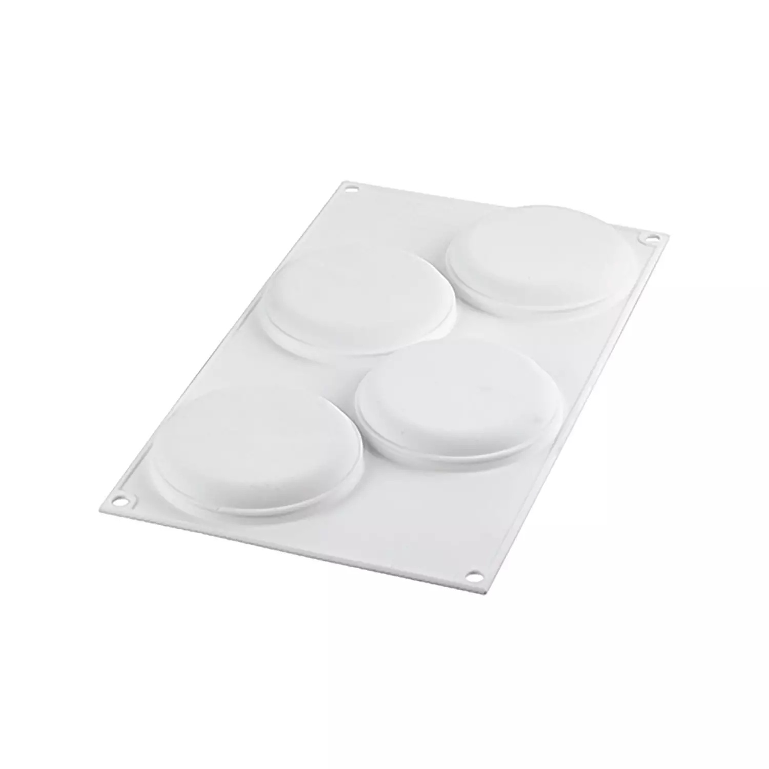 Do zestawu dołączona jest forma silikonowa z czterema gniazdami Ø8,5 cm, która pozwala przygotować dekoracyjną warstwę deseru dopasowaną do kruchego spodu.