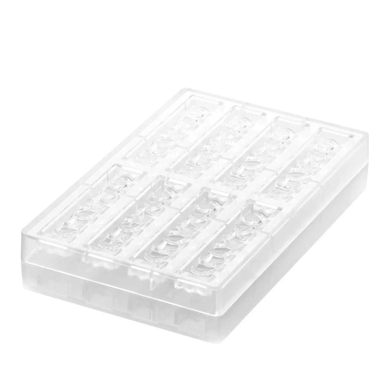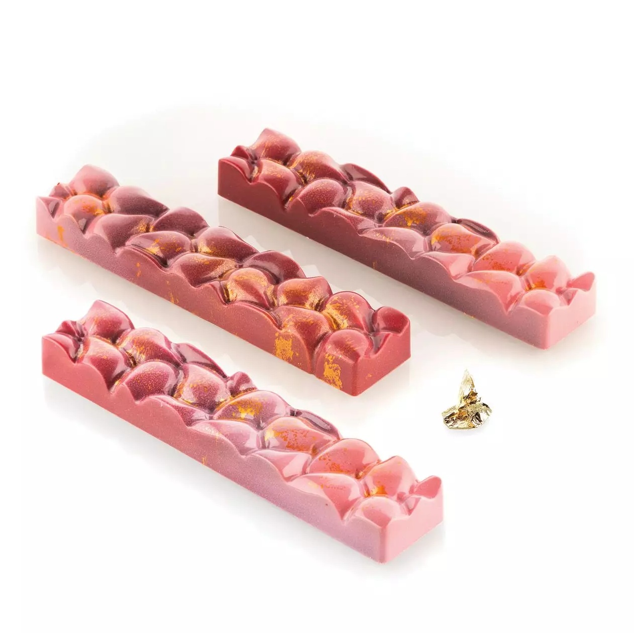 Rzemieślnicze batony czekoladowe, snack bary z nadzieniem, kolekcje degustacyjne, personalizowane upominki premium, limitowane serie smakowe do kawy. To forma do batonów czekoladowych 12 cm, która pozwala tworzyć nowoczesne desery gotowe do zapakowania i ekspozycji.