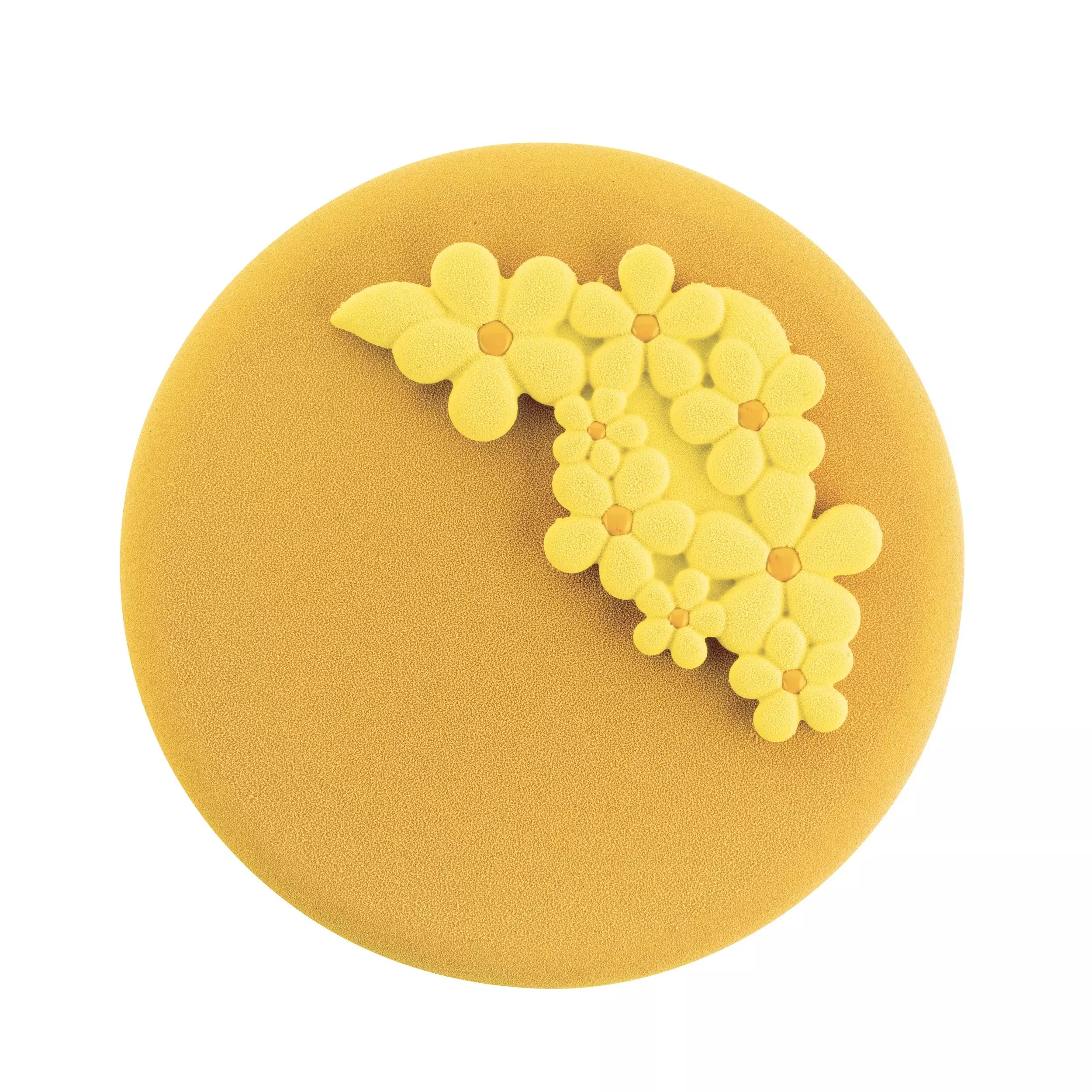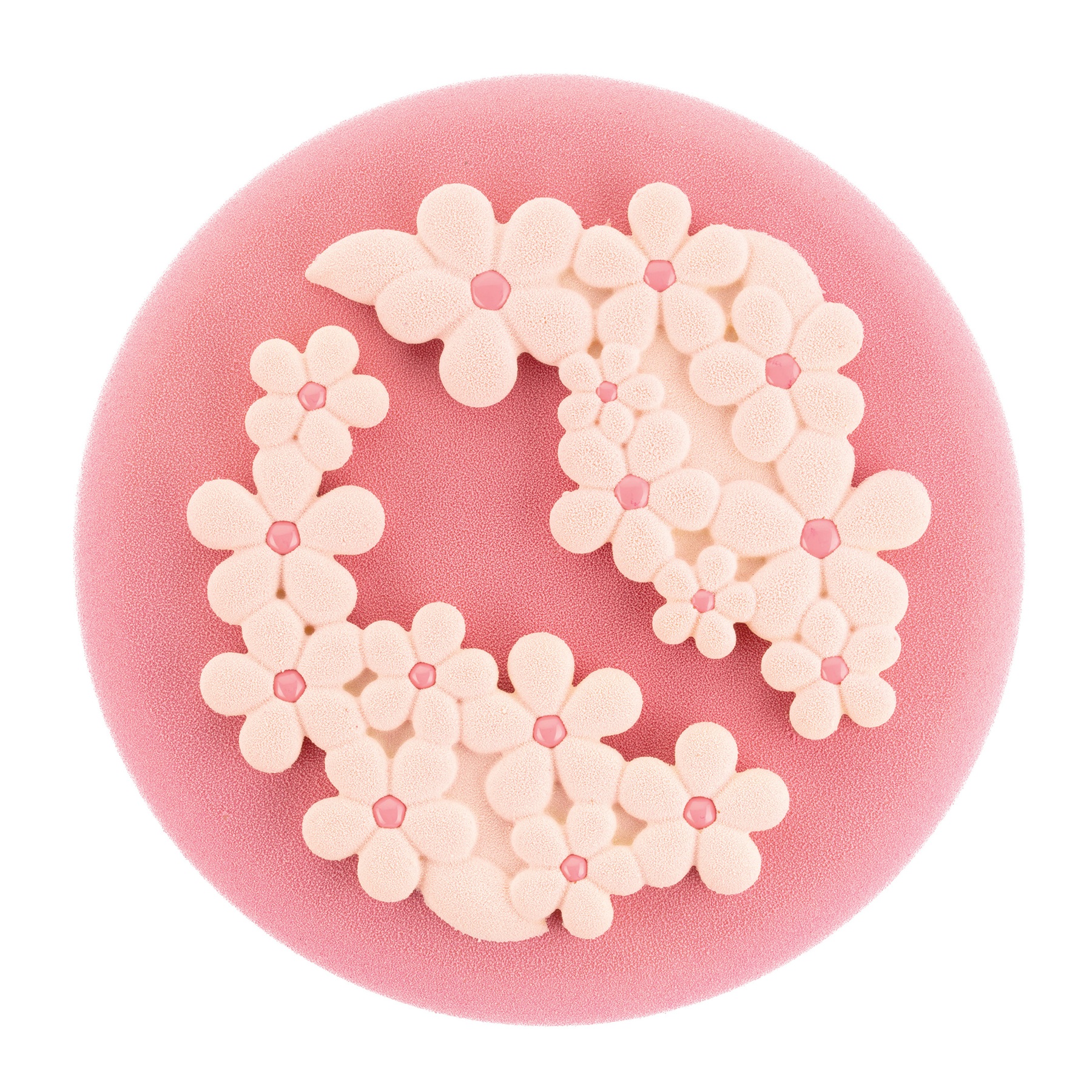 Specjalna struktura formy tworzy delikatny, kwiatowy relief, który wygląda lekko i nowocześnie na powierzchni deseru.