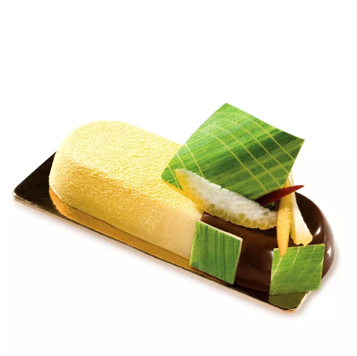 Wyobraź sobie idealnie gładkie podłużne monoporcje o zaokrąglonych rogach, pokryte polewą lustrzaną lub aksamitnym efektem czekoladowym. Delikatne linie formy sprawiają, że deser wygląda nowocześnie i elegancko, a dekoracje prezentują się jeszcze bardziej efektownie.