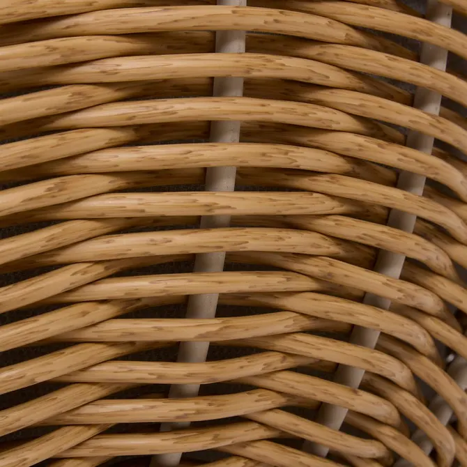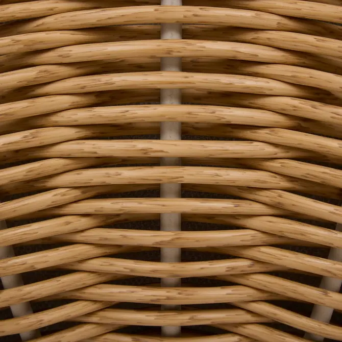 Plecionka wiernie imitująca naturalny rattan została osadzona na stalowej konstrukcji zabezpieczonej: