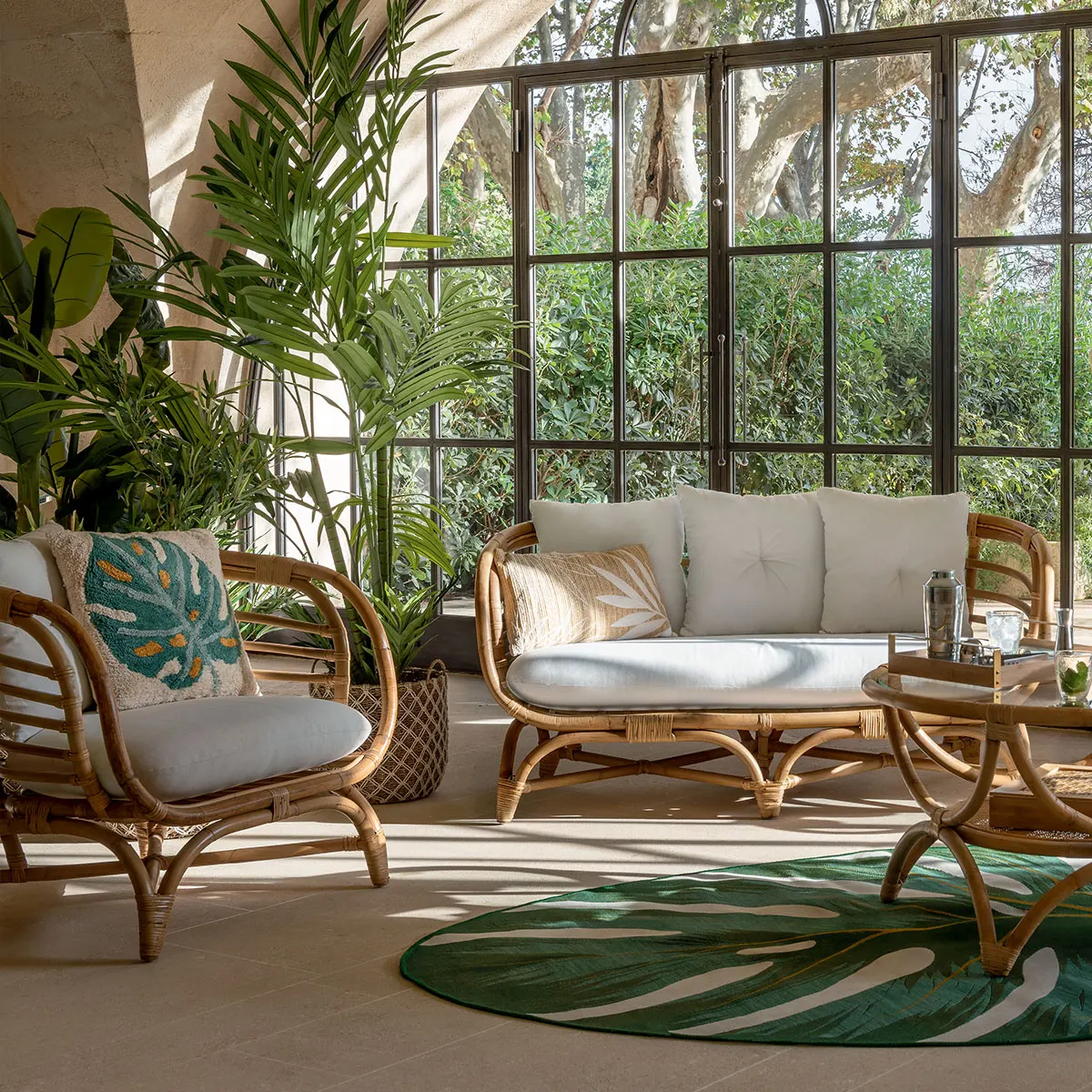 Naturalny urok rattanu pięknie współgra z zielenią roślin i ciepłymi dodatkami, co sprawia, że fotel rattanowy Farah doskonale pasuje do salonu, oranżerii lub przytulnego kącika relaksacyjnego. Można go uzupełnić poduszkami lub kocem, by stworzyć idealne miejsce na filiżankę herbaty lub wieczorne czytanie książek, przyciągając uwagę swoją subtelną, naturalną estetyką.