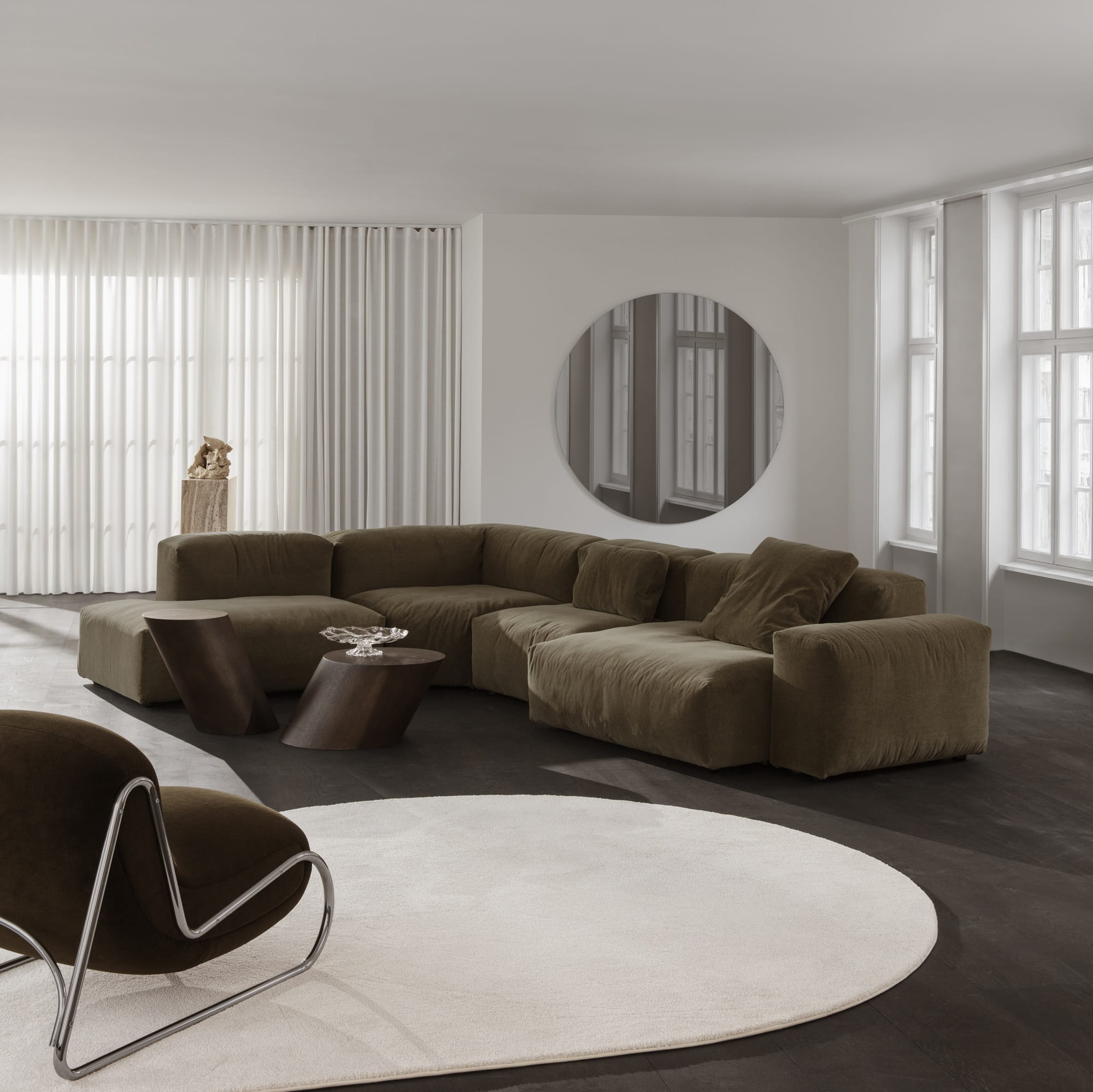 Zastosowana tapicerka Alpaka by One Mario Sirtori to szlachetny aksamit oparty na wełnie alpaki, cenionej za wyjątkową miękkość, sprężystość i trwałość. Delikatnie matowa, głęboka struktura tkaniny nadaje fotelowi wyrafinowany, spokojny charakter i doskonale wpisuje się w nowoczesne wnętrza premium. Materiał przyjemnie reaguje na światło, podkreślając rzeźbiarską formę fotela, a jednocześnie zachowuje wysokie parametry użytkowe, dzięki czemu sprawdza się także przy intensywnym użytkowaniu.