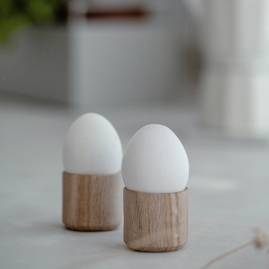 Kieliszki do jajek drewniane Egg Me od Ekta Living to wyjątkowe połączenie elegancji, funkcjonalności i trwałości. Wykonane z certyfikowanego drewna dębowego (FSC), stanowią doskonały wybór dla osób ceniących naturalne materiały i ponadczasowy design. Ich minimalistyczna, a zarazem wyrafinowana forma sprawia, że doskonale komponują się zarówno w nowoczesnych, jak i klasycznych wnętrzach kuchennych, dodając im subtelnej elegancji.