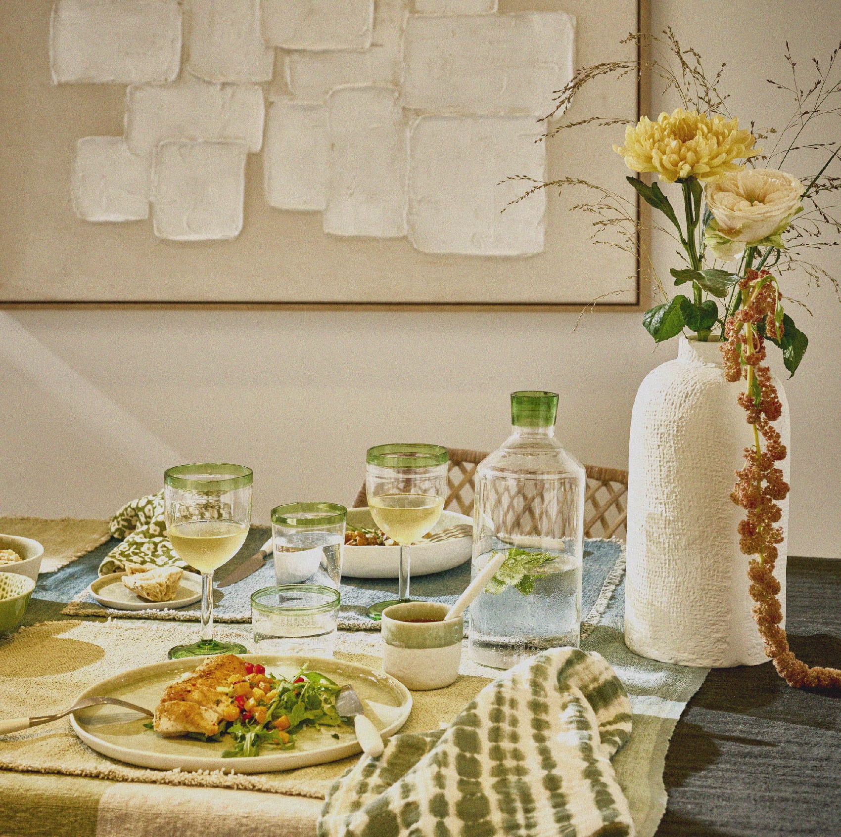 Wykonane z najwyższej jakości szkła borokrzemowego kieliszki o pojemności 300 ml zachwycają kolorowym zielonym paskiem, barwionym w masie (który pojawia się na górze każdego elementu), jak i barwieniu podstawy. Dzięki temu kolor pozostaje intensywny i głęboki przez lata, niezależnie od częstego mycia w zmywarce. Dmuchane ustnie szkło sprawia, że każdy kieliszek Tarifa jest unikalny – niepowtarzalny detal, który nadaje mu artystycznego charakteru.