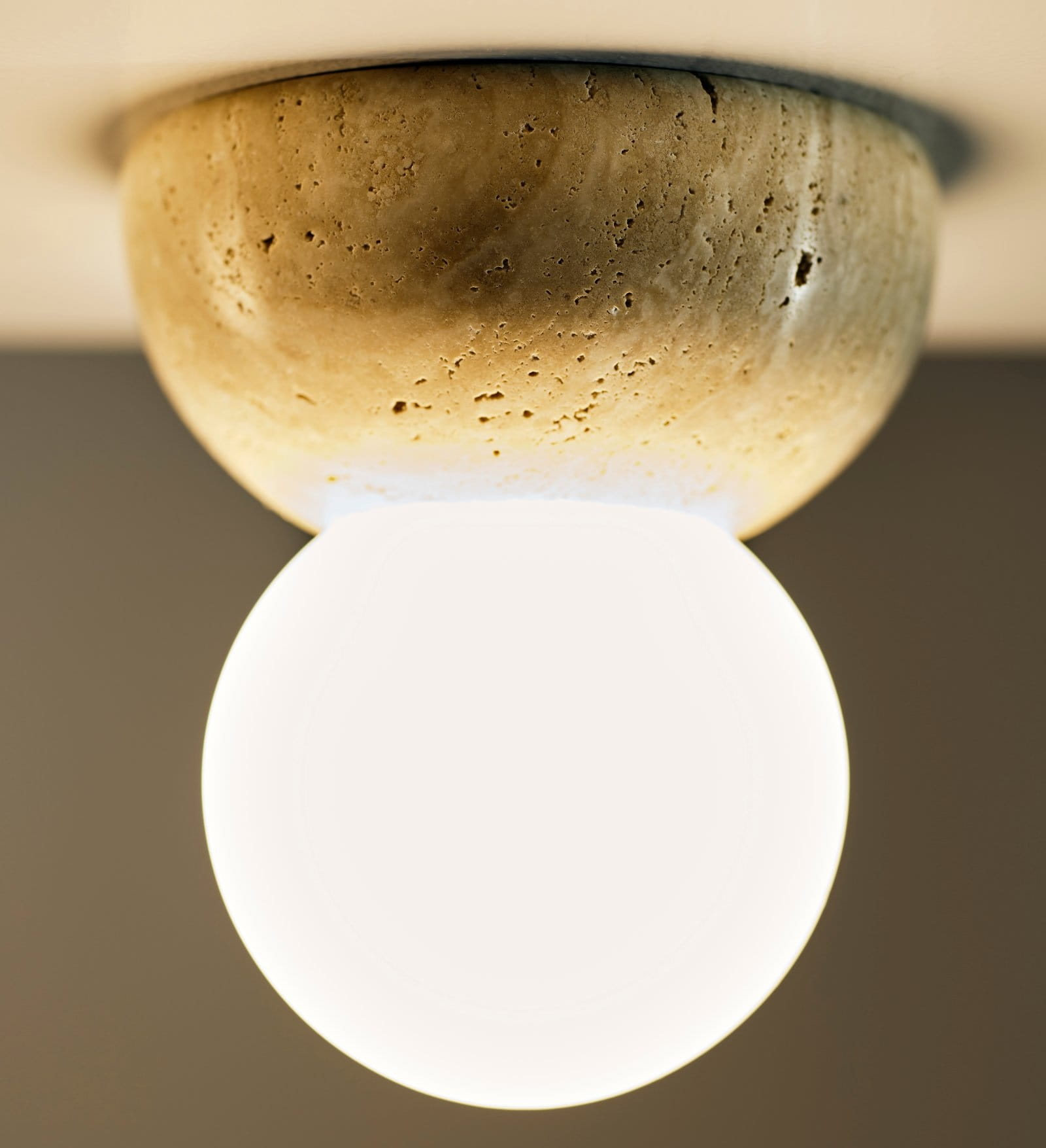 Podstawa lampy wykonana z beżowego trawertynu sprawia, że każdy egzemplarz jest unikalny – naturalnie powstające różnice w odcieniu i strukturze kamienia czynią Torrano małym dziełem sztuki. Opalowy, matowy klosz równomiernie rozprasza światło, tworząc atmosferę miękkości i przytulności. To idealne rozwiązanie dla osób ceniących minimalistyczne, a jednocześnie luksusowe elementy we wnętrzu.