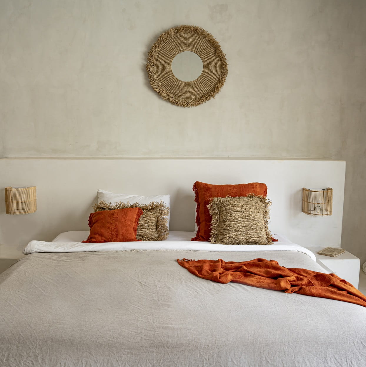 Kinkiet rattanowy w stylu skandynawskim, japandi
