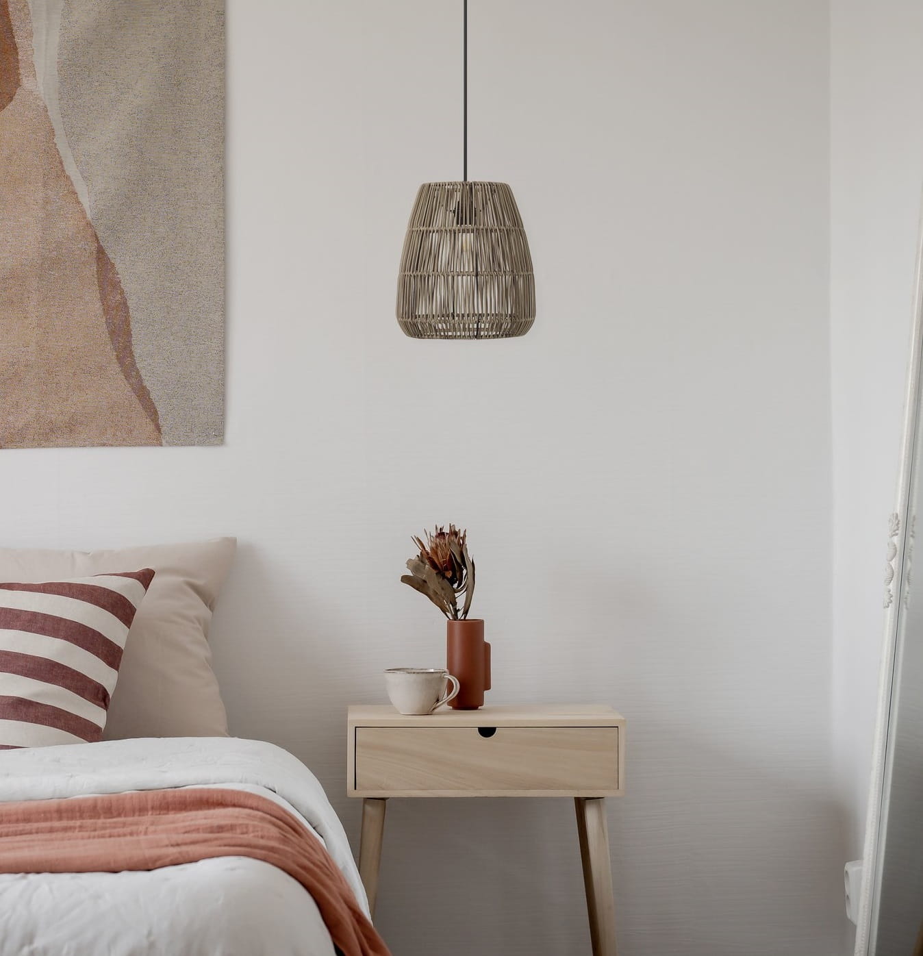 Ręcznie pleciona struktura poliratanu tworzy subtelne, rozproszone światło, nadając pomieszczeniom ciepły i przytulny klimat. Dzięki wytrzymałości materiału, klosz jest odporny na uszkodzenia i łatwy w pielęgnacji, co czyni go doskonałym wyborem do użytkowania.
