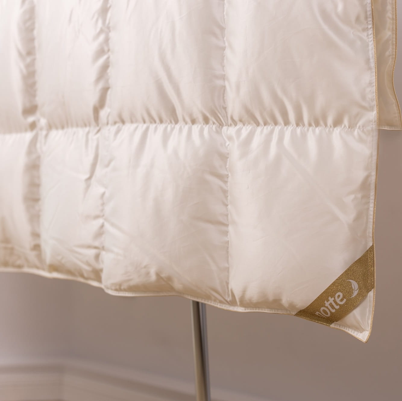 Kołdra z puchu gęsiego Notte Dolce to ekskluzywny wyrób pościelowy, stworzony z myślą o najbardziej wymagających użytkownikach. Łączy w sobie szlachetność naturalnego jedwabiu z ręcznie selekcjonowanym, najwyższej jakości puchem gęsim, zapewniając wyjątkową miękkość, lekkość i doskonałą termoregulację.