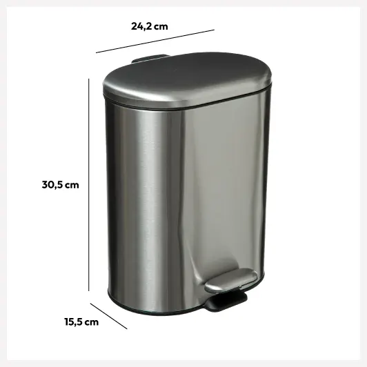 Kosz na śmieci łazienkowy 5five charakteryzuje się kompaktowymi wymiarami, o szerokości zaledwie 15,5 cm, co pozwala na optymalne wykorzystanie przestrzeni przy jednoczesnym zachowaniu estetycznego wyglądu. Pojemność 6 litrów sprawia, że kosz doskonale nadaje się do codziennego użytku w łazience czy biurze, umożliwiając sprawne gospodarowanie odpadami.