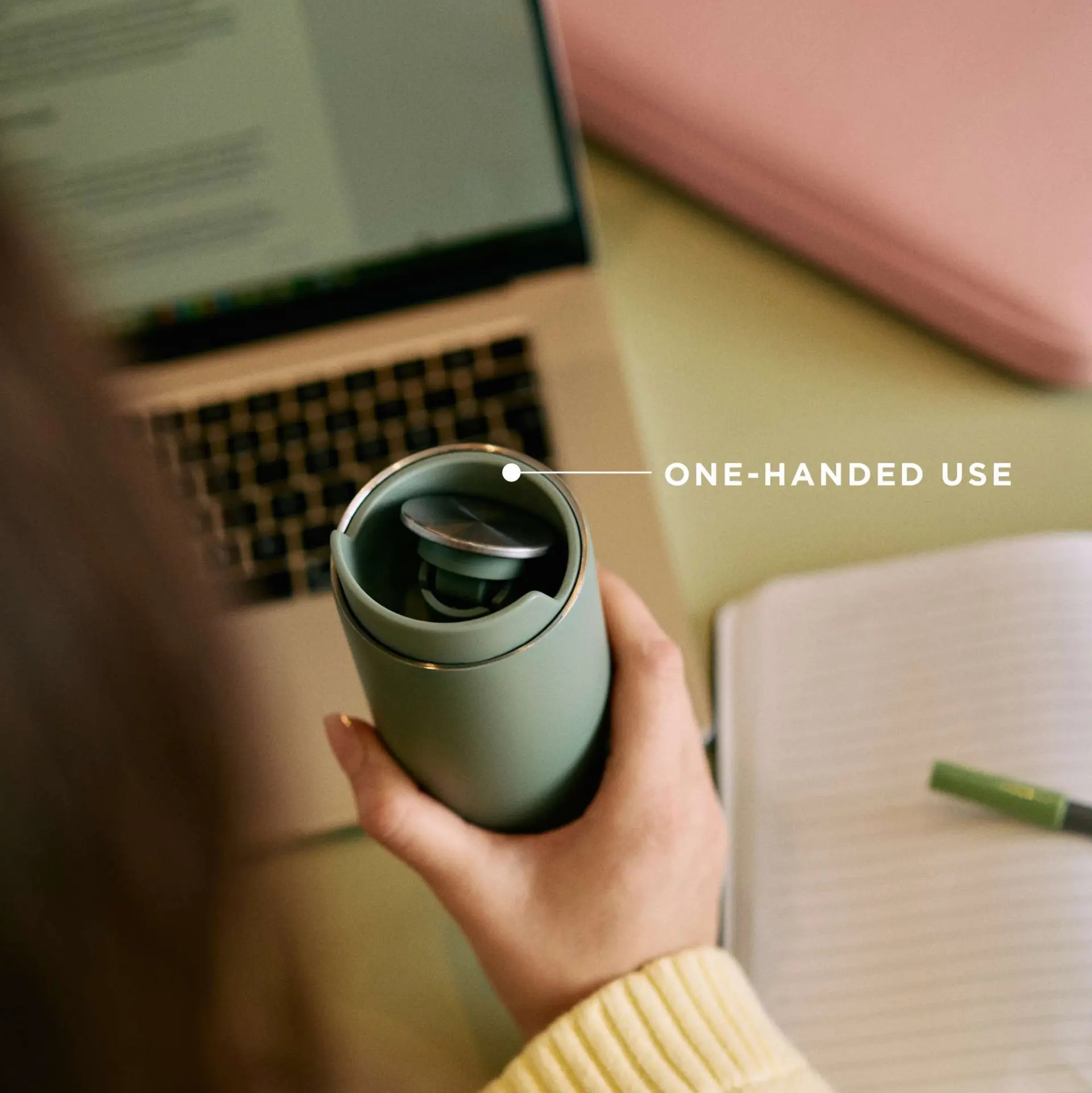 To kubek termiczny próżniowy premium z systemem click i 100% szczelnością, zaprojektowany do intensywnego, codziennego rytmu.