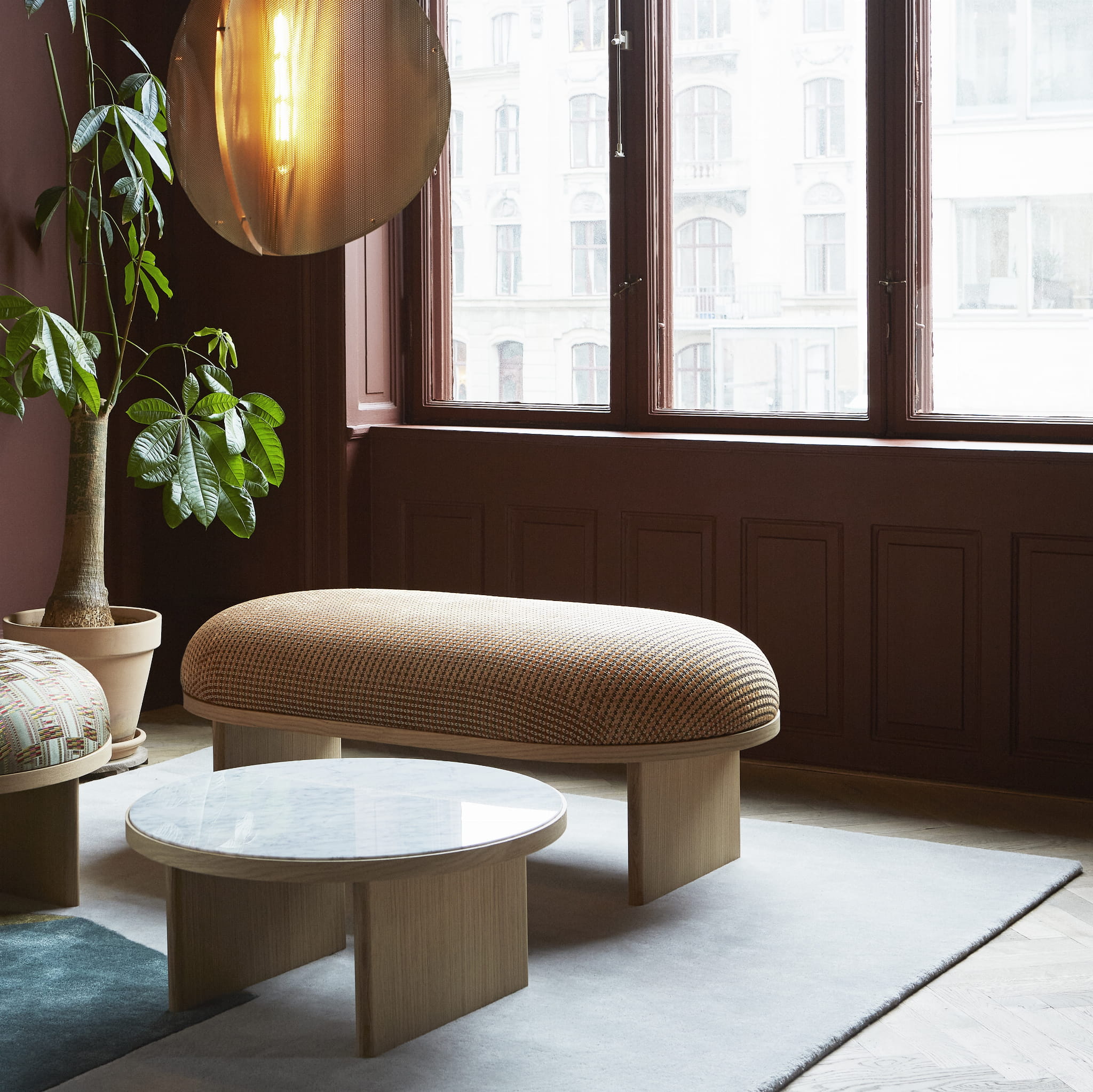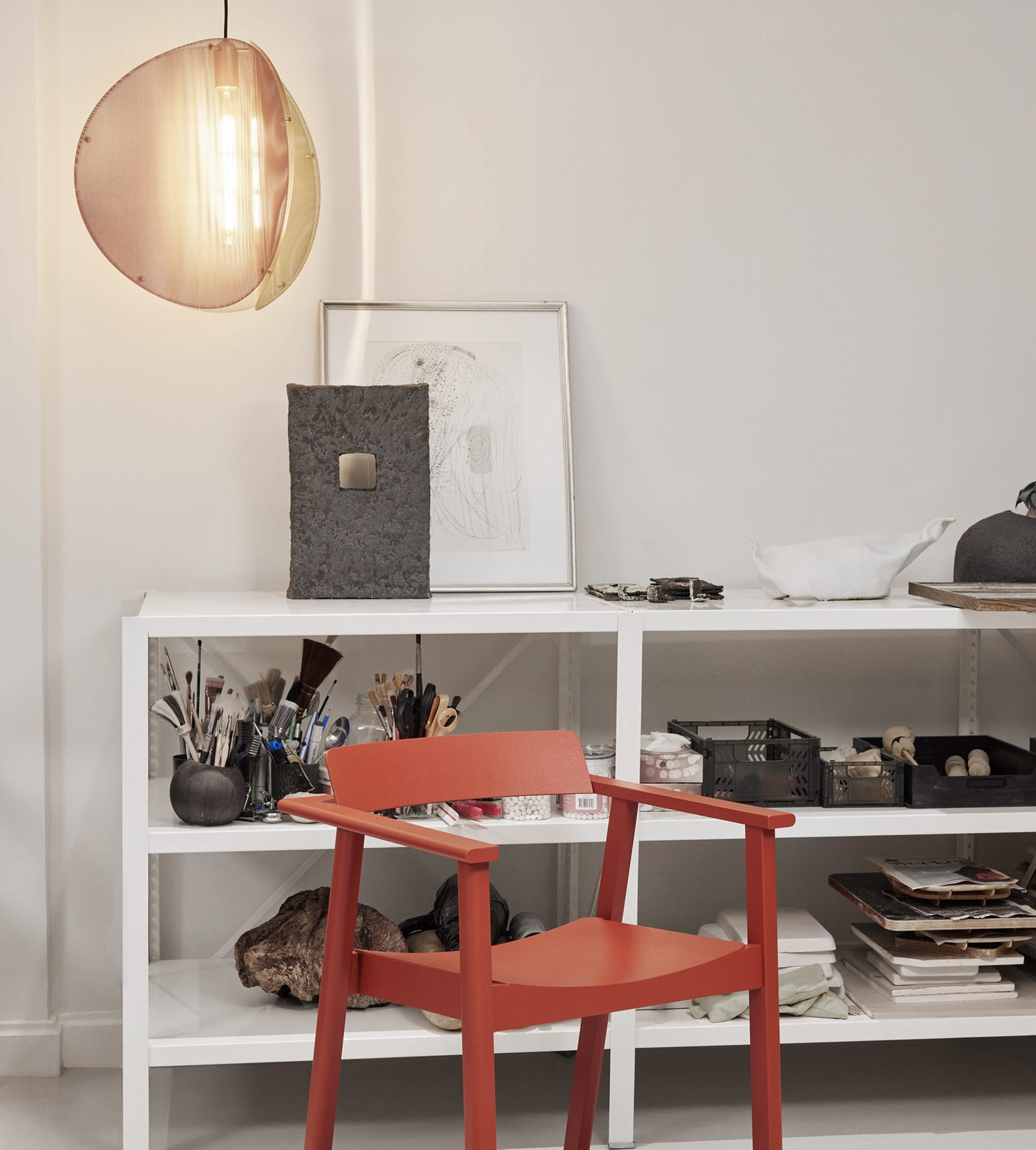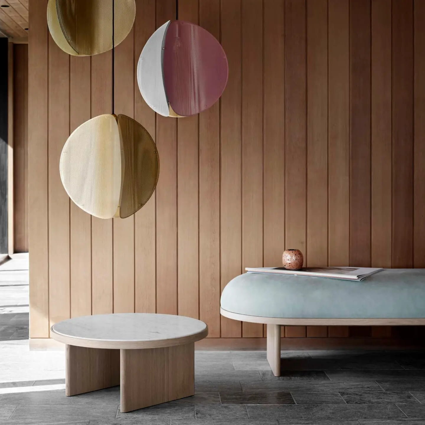 Lampa designerska wisząca Proxima dostępna jest w dwóch wyjątkowych wariantach kolorystycznych. Klasyczna wersja mosiężna podkreśla minimalistyczną elegancję, natomiast odważna trójkolorowa odsłona – łącząca indyjską czerwień, szarość popielatą i mosiądz – wprowadza do wnętrza artystyczną energię i nowoczesny charakter. Dzięki temu możesz dopasować ją idealnie do swojego stylu aranżacji.