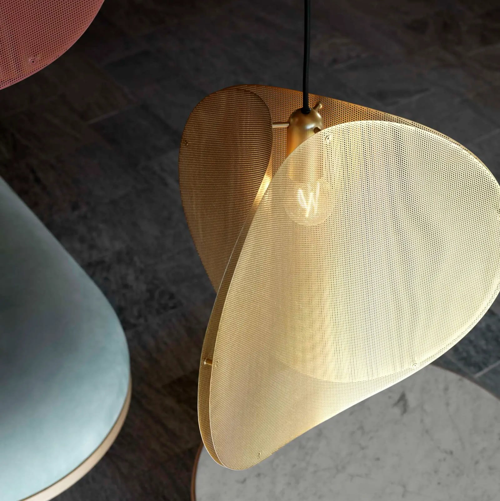 Lampa designerska wisząca Proxima, mosiądz - PLEASE WAIT to be SEATED
