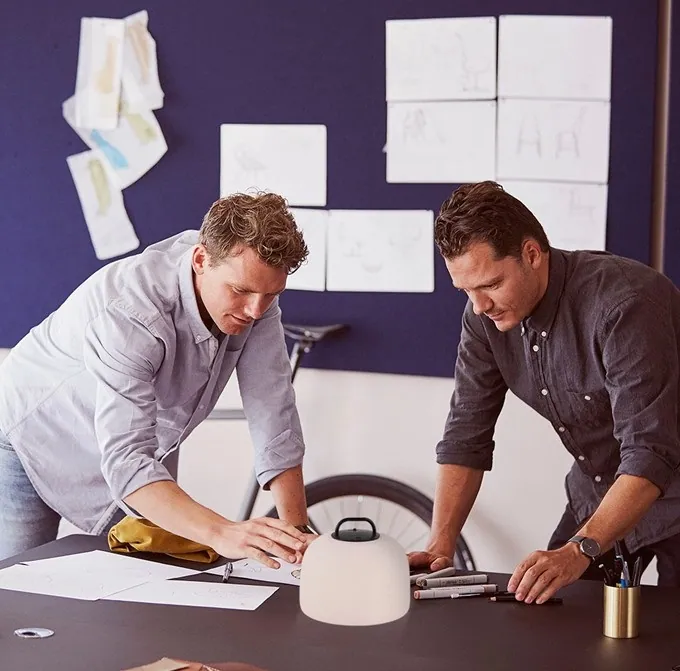 Lampa ogrodowa zaprojektowana jest przez duet renomowanych duńskich projektantów Says Who (Kasper Meldgaard i Nikolaj Duve). Ich pasją jest tworzenie inteligentnych i innowacyjnych produktów codziennego użytku. Ich projekty powstają przy wykorzystaniu najnowszych technologii 3D i VR. Projektanci są doświadczeni w projektowaniu, budownictwie i inżynierii. Tworząc współczesny design, czerpią inspiracje z wzornictwa przemysłowego, sztuki, łącząc inżynierię z kreatywnością.