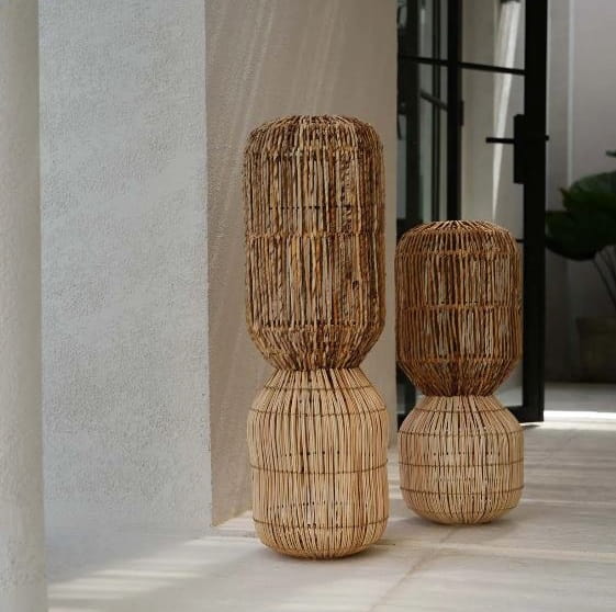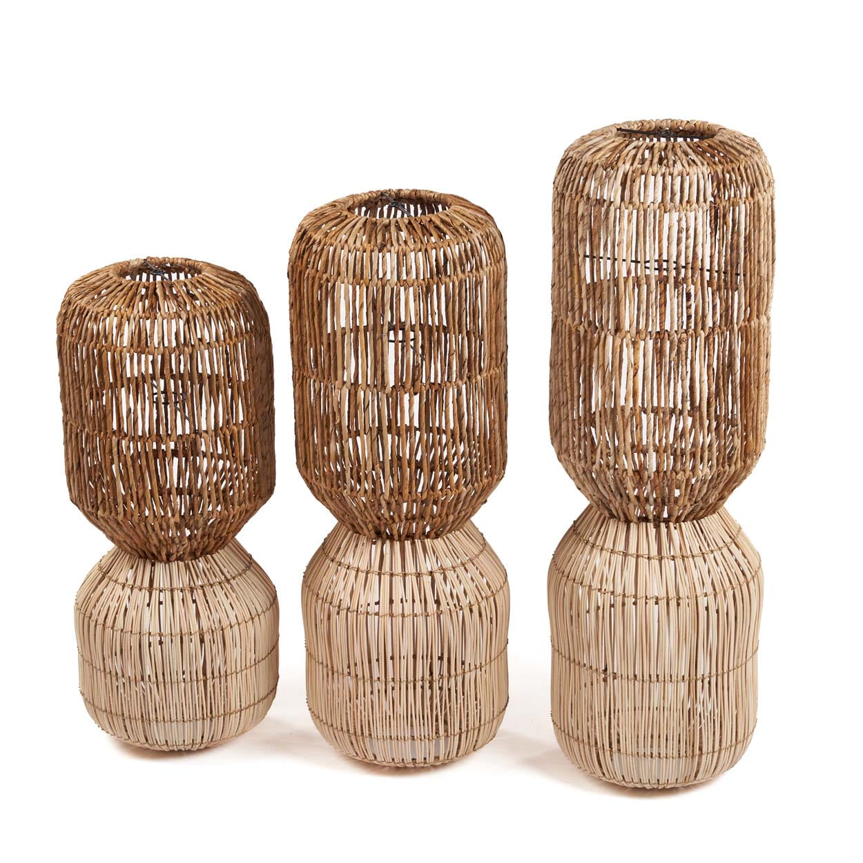 Abażur pleciony ChemChem od Bazar Bizar to wyjątkowe połączenie naturalnej estetyki i rękodzielniczej precyzji, które wprowadza do wnętrz nie tylko światło, ale także niepowtarzalny charakter. Ten abażur pleciony, nadający się zarówno do zawieszenia jak i ustawienia na podłodze, wykonany z liści bananowca i rattanu, stanowi znakomity przykład designu inspirowanego naturą. Jego organiczna forma i surowa faktura tworzą przytulną, zmysłową atmosferę, sprawiając, że każde pomieszczenie nabiera głębi i ciepła.