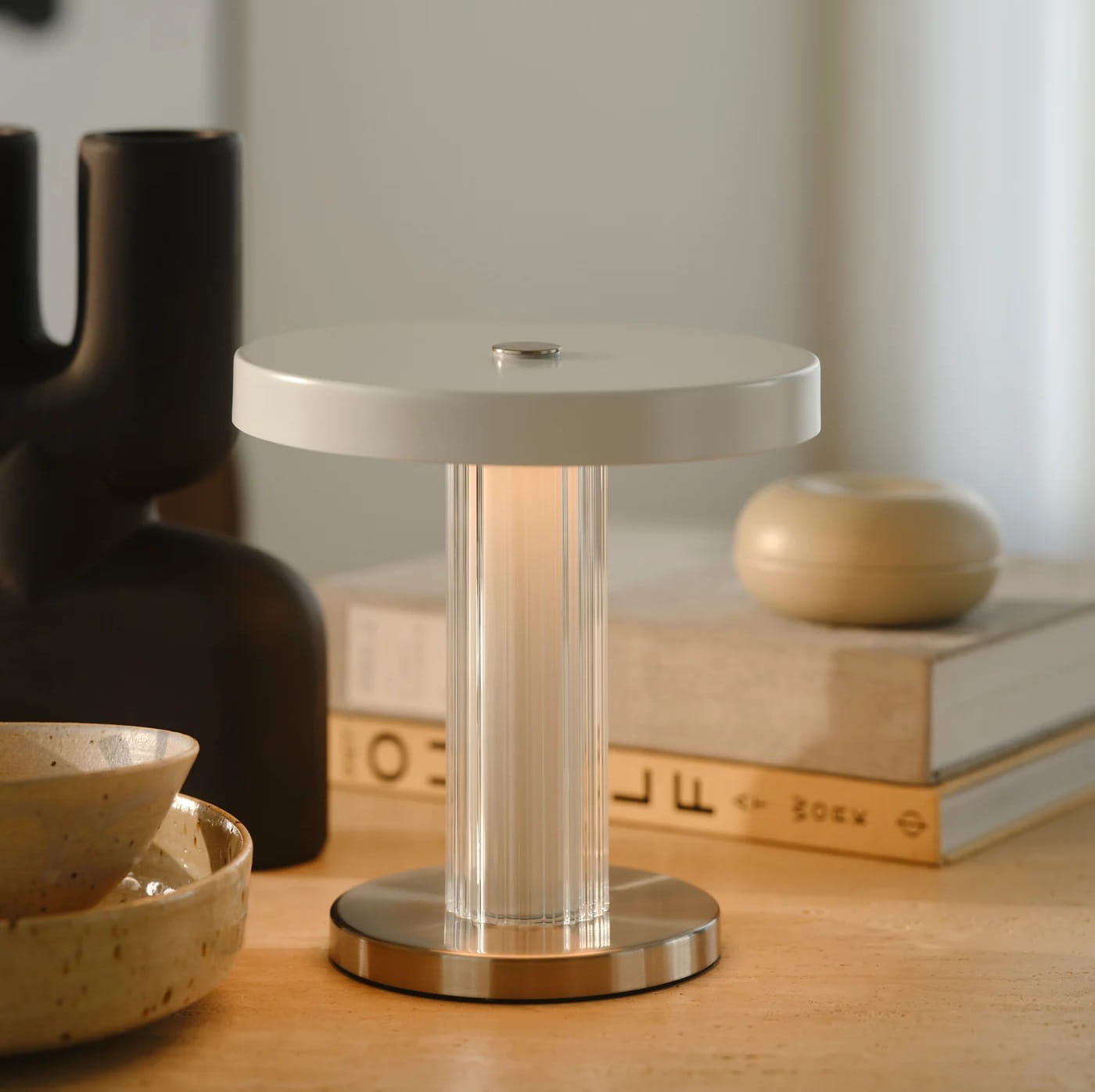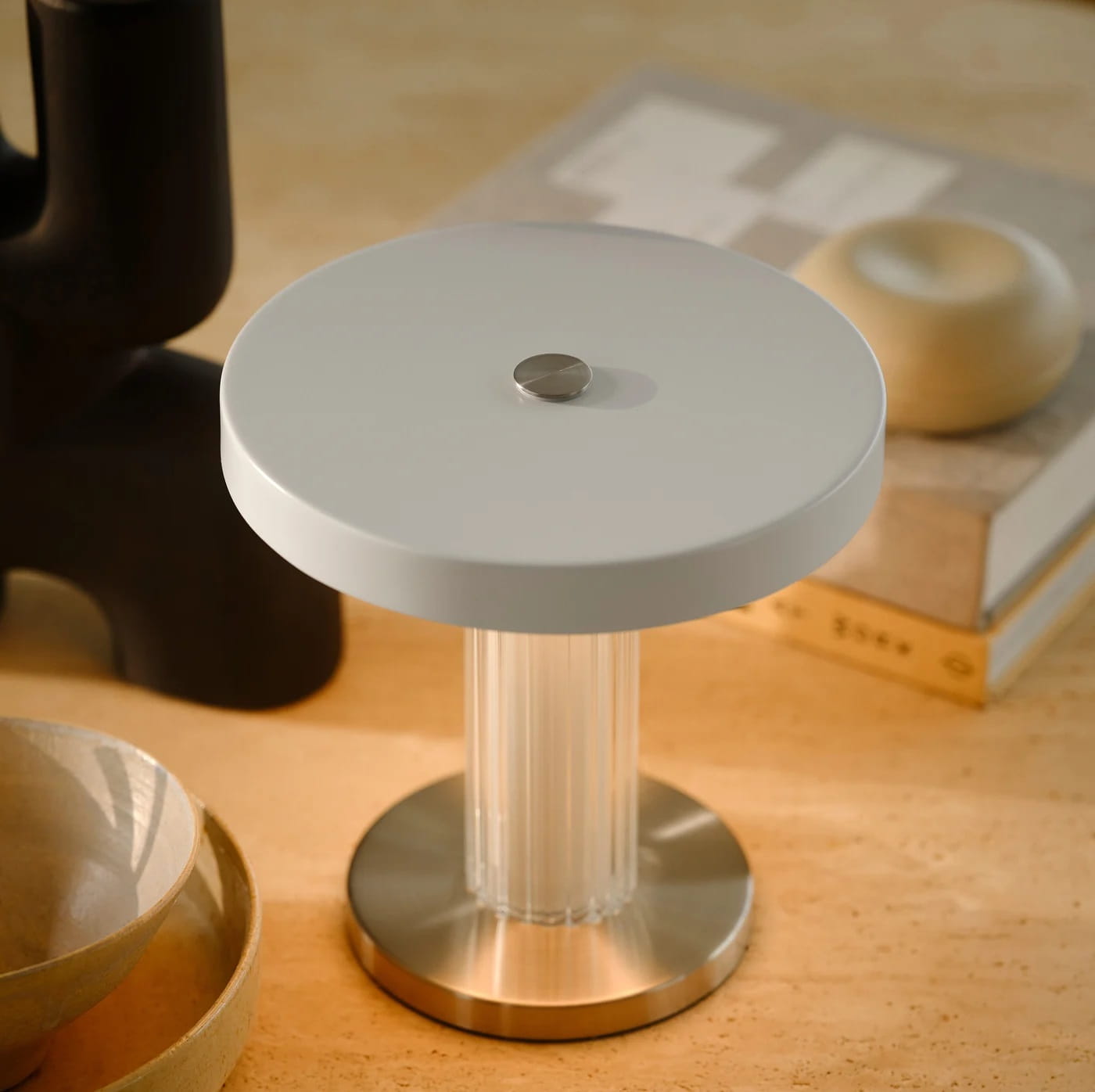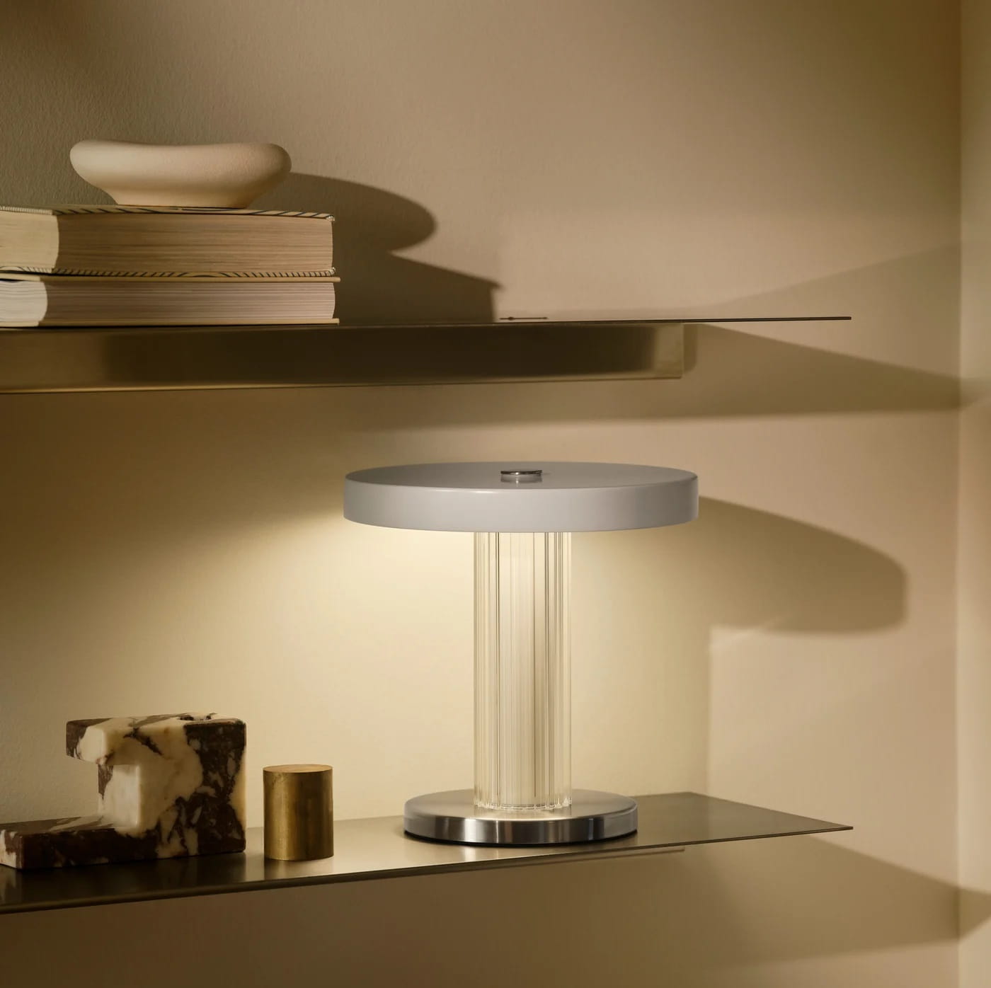 Lampa przenośna stołowa Trezzi to wyrafinowane połączenie funkcjonalności i elegancji, zaprojektowane przez duńskie studio Anker. Stworzona z myślą o nowoczesnych, świadomych estetycznie wnętrzach, wyróżnia się starannie dopracowanym detalem i subtelną formą inspirowaną stylem Art Deco.