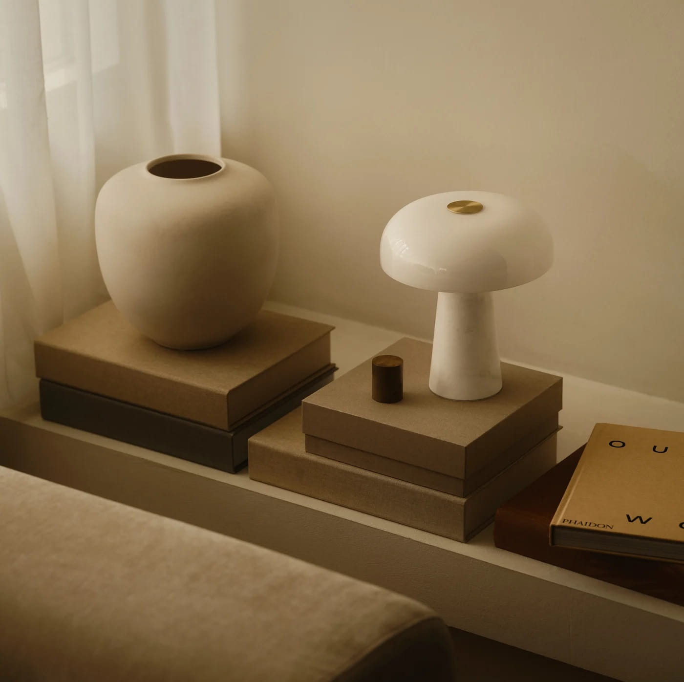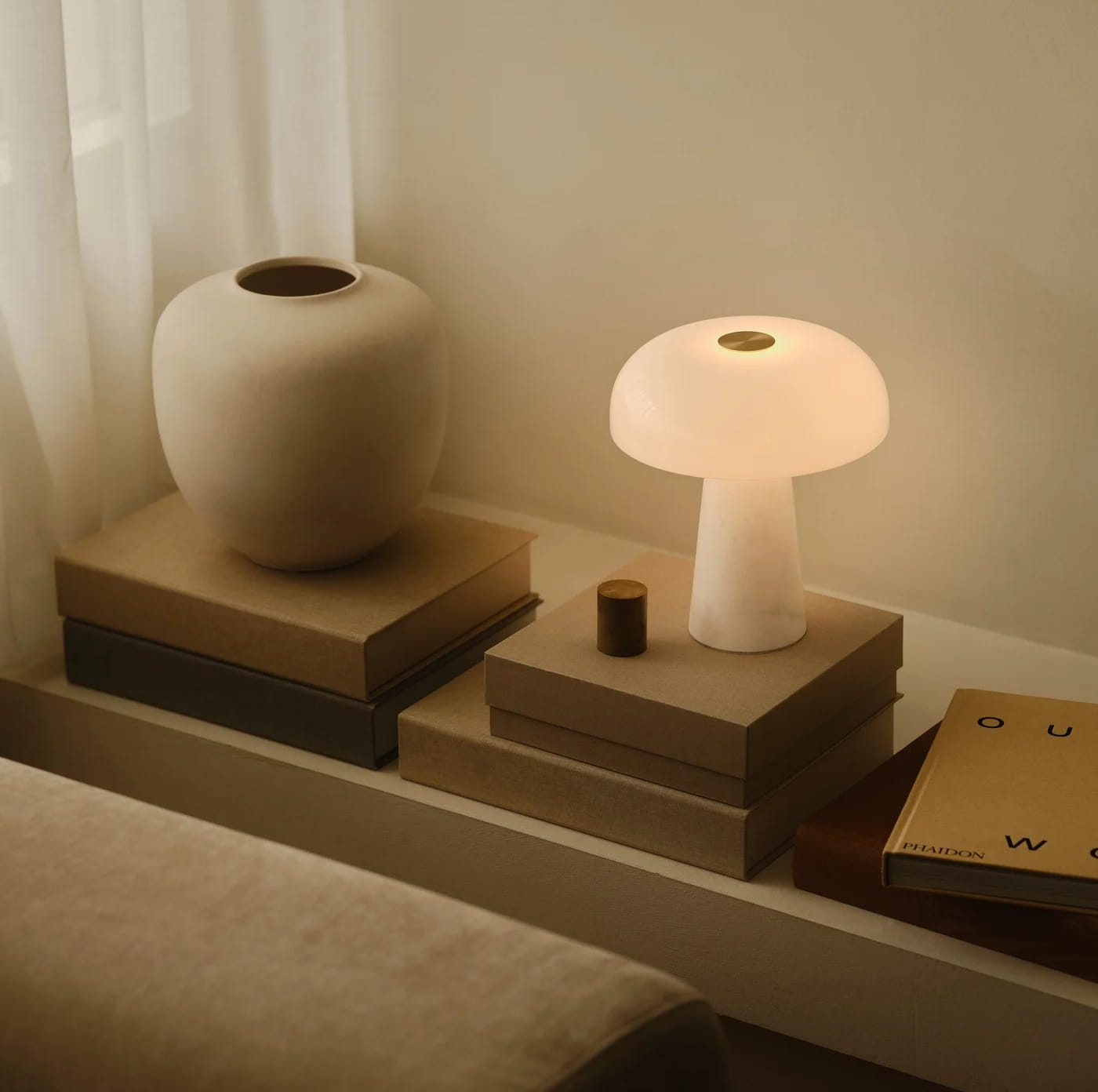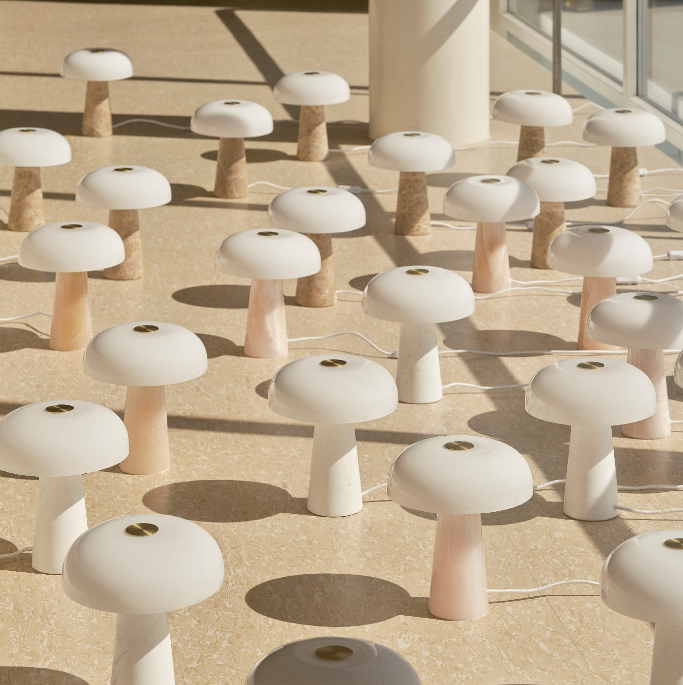 Lampa marmurowa ze szklanym kloszem zaprojektowana jest przez Marię Berntsen.