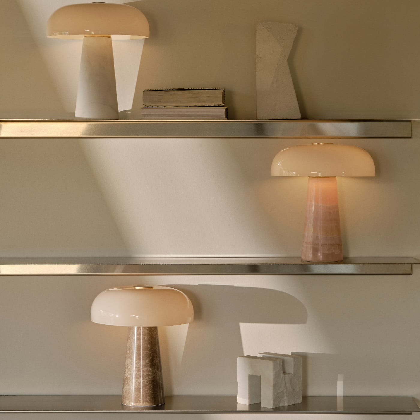 Glossy Mini została wykonana z ekskluzywnych materiałów: marmurowa podstawa zapewnia stabilność i szlachetny wygląd, opalowe szkło klosza subtelnie rozprasza światło, a delikatne, mosiężne detale dodają całości luksusowego charakteru. To harmonijne połączenie klasyki i nowoczesności czyni tę lampę wyjątkowym dodatkiem do wnętrz o wysokim standardzie estetycznym.