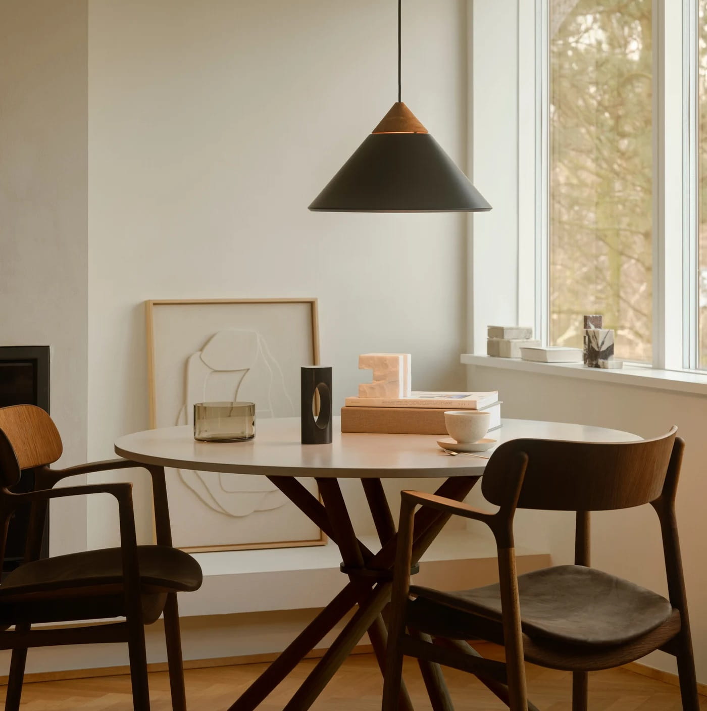 Lampa wisząca Kinto to przykład nowoczesnego wzornictwa inspirowanego skandynawskim minimalizmem i rzemieślniczą precyzją. Projekt autorstwa duetu Bjørn + Balle łączy nowoczesne podejście do formy z ciepłem naturalnych materiałów.
