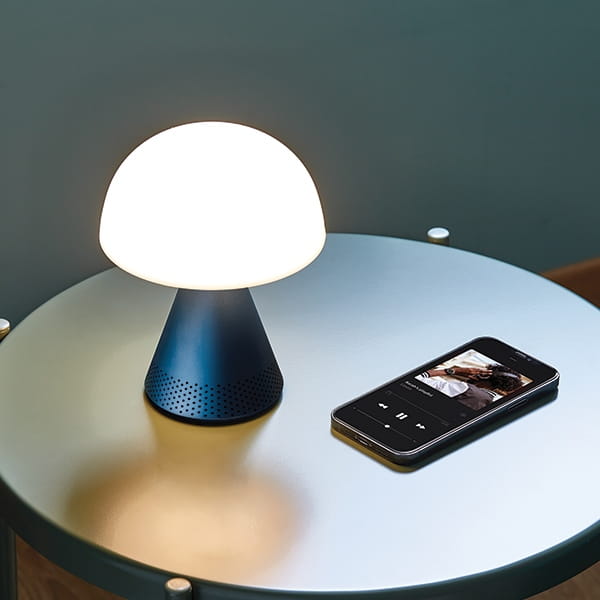 Lampa z głośnikiem bluetooth Mina Audio Led, bezprzewodowa, niebieska - Lexon