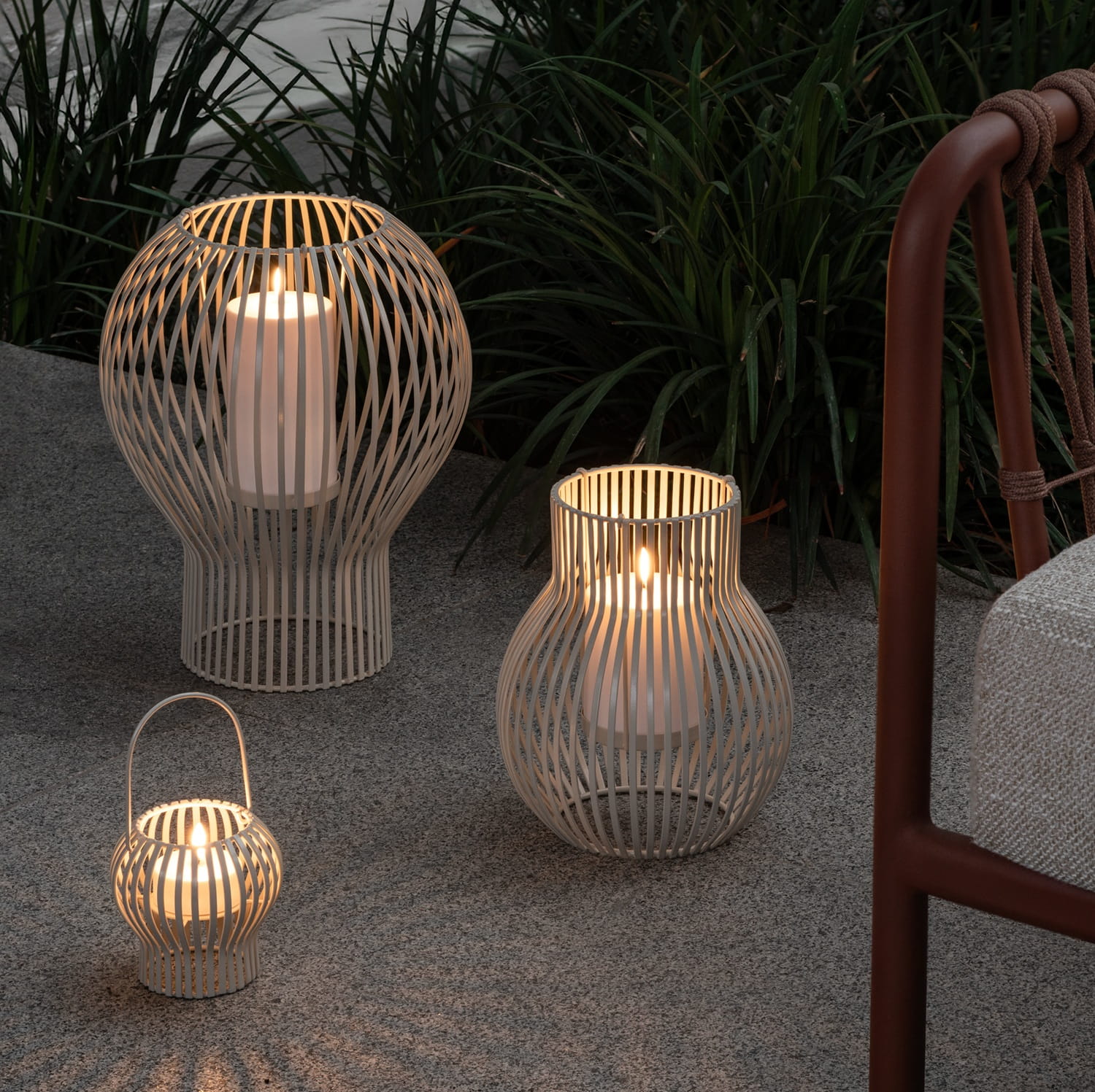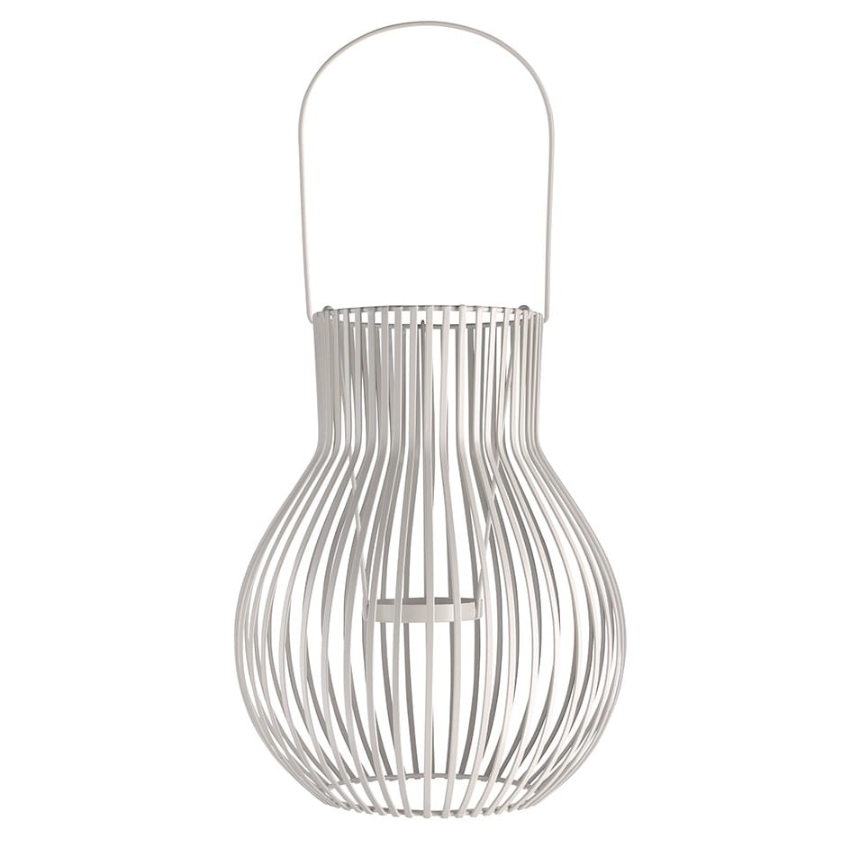 Latarnia Upside Down to duży lampion ogrodowy z metalu w kolorze jasnoszarym, który nie konkuruje z otoczeniem, ale je definiuje. Rzeźbiarska sylwetka tworzy wyważoną oprawę dla świecy – światło jest stabilne, skupione i eleganckie. To metalowa latarnia ogrodowa premium, która sprawdzi się w aranżacjach minimalistycznych, japandi, modern classic i w ogrodach o uporządkowanej zieleni.